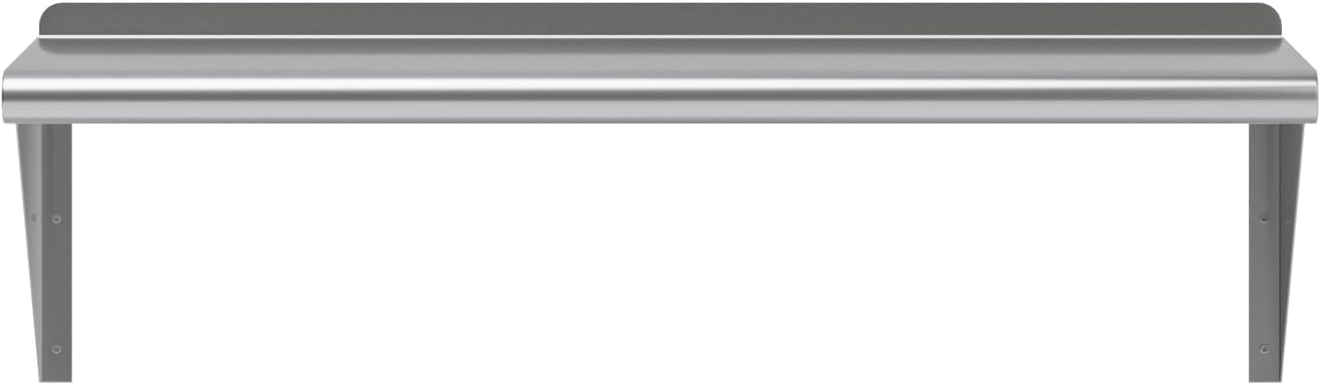 - This heavy-duty multifunctional stainless wall shelf is made with 18 gauge stainless steel and can hold up to 230 lbs of weight. The design features a 1" backsplash and bullnose edge. It's made with durable welded corners and support brackets.