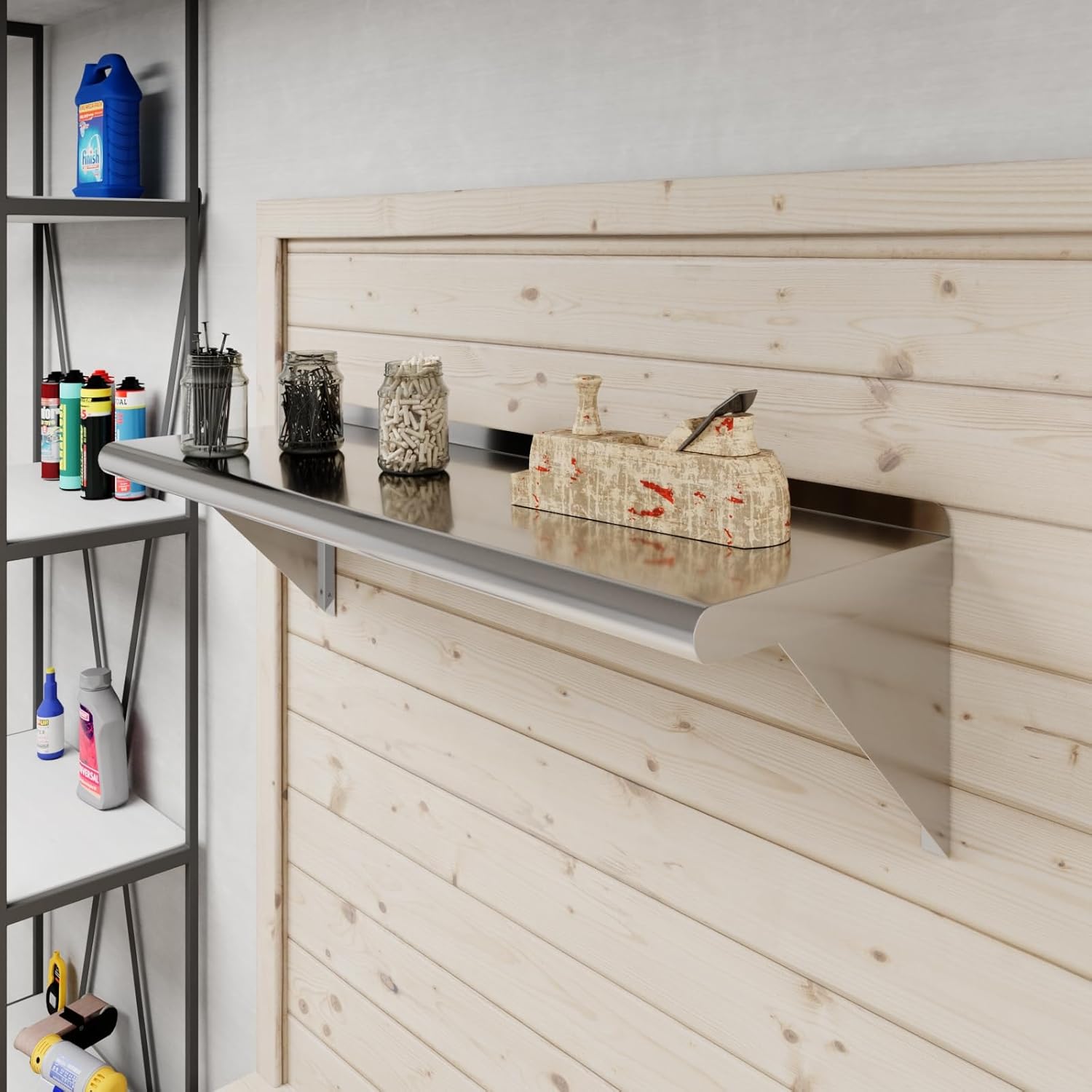 - This corrosion-resistant wall mount shelf can handle anything you throw at it and will last for years to come. Easy to clean and sterilize, metal shelves are superior to wood or glass. Food and liquid won’t get stuck or ruin the integrity of the surface. Easily wipe away excess with no fuss, mess, or contamination.