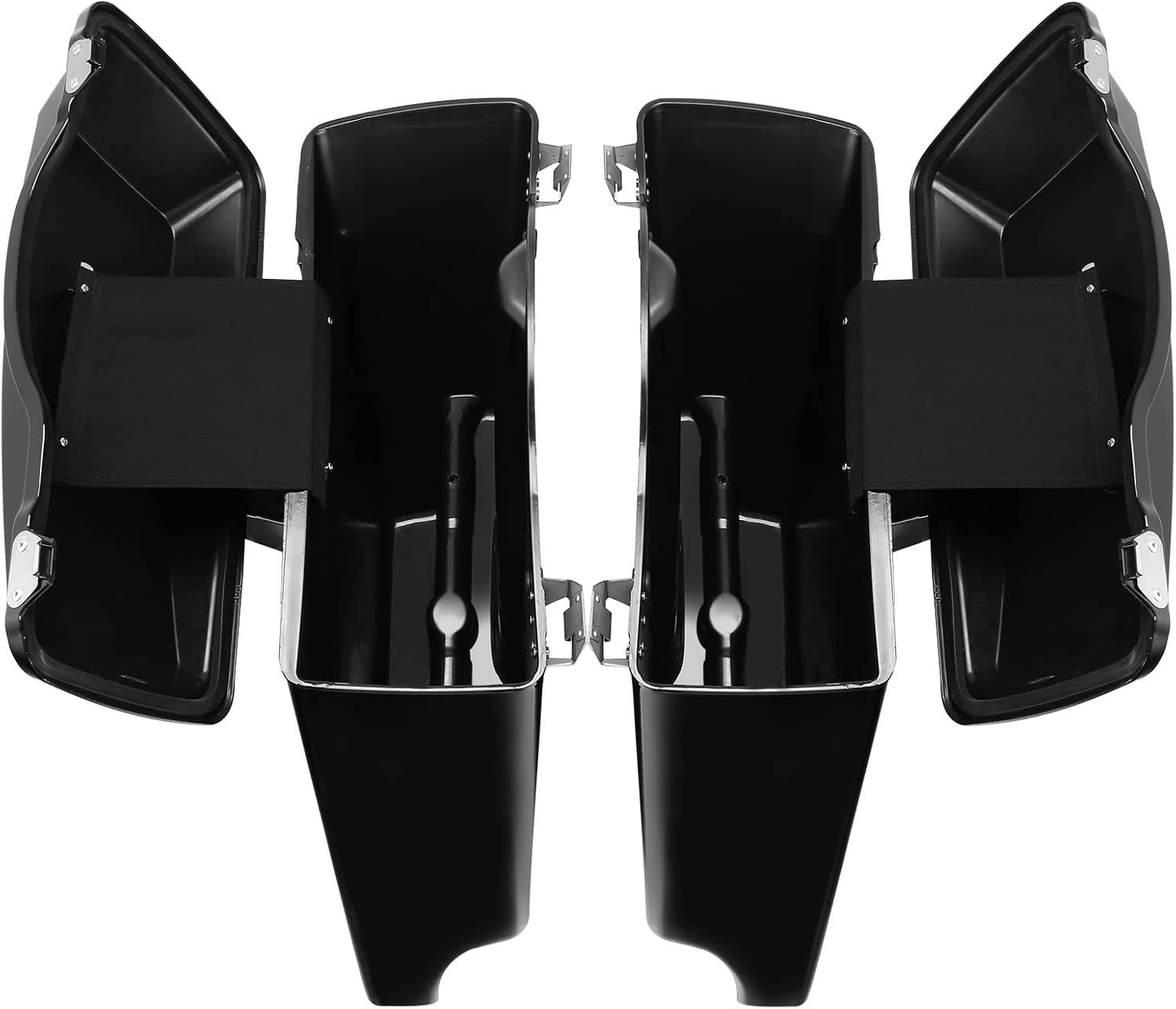 XFMT Motorcycle Stretched Saddlebags Vivid Black 5" Extended Hard Saddle Bags W/Black Latches For Harley Touring Road King Street Glide Road Glide Electra Glide Ultra Classic 1993-2013