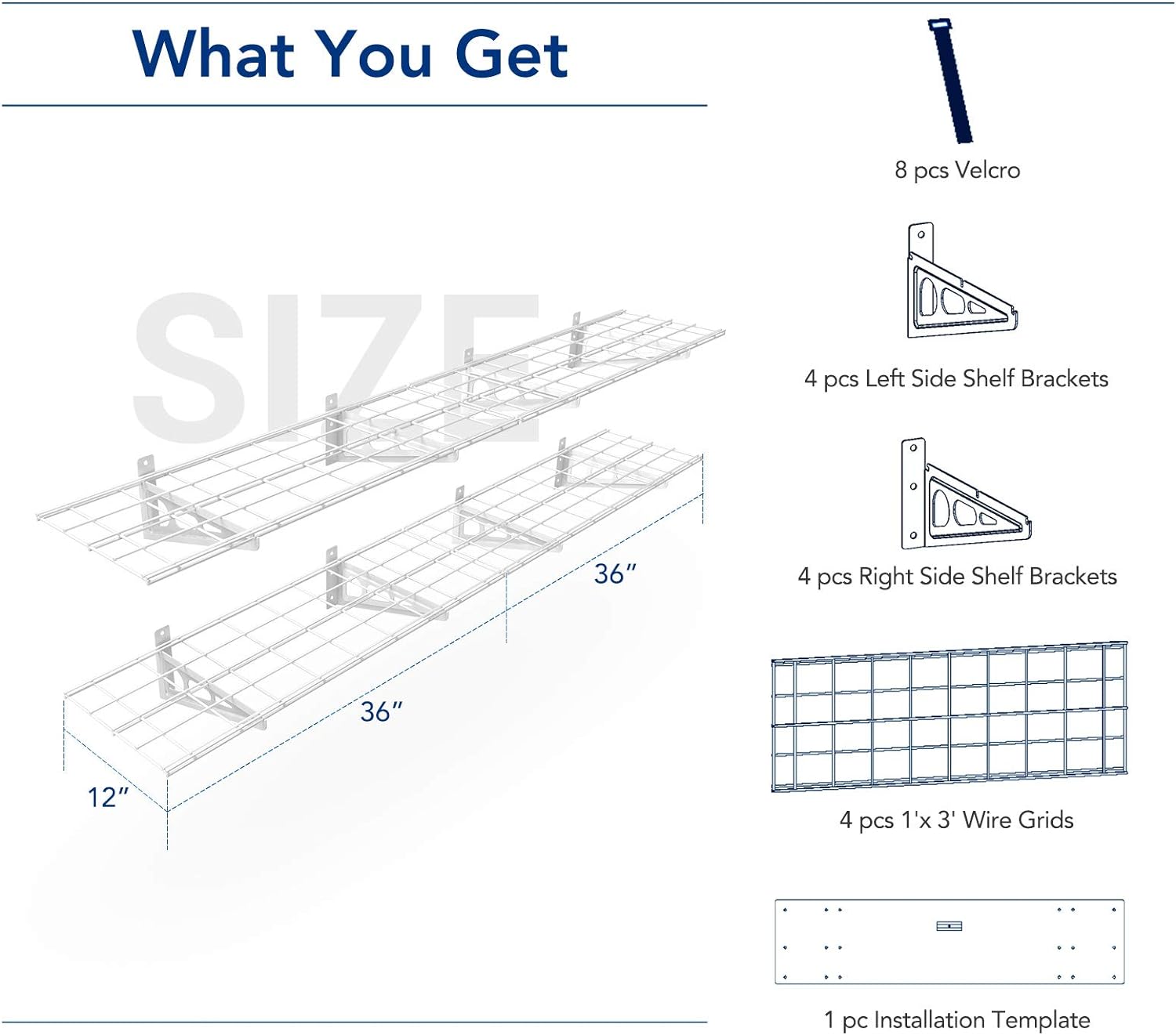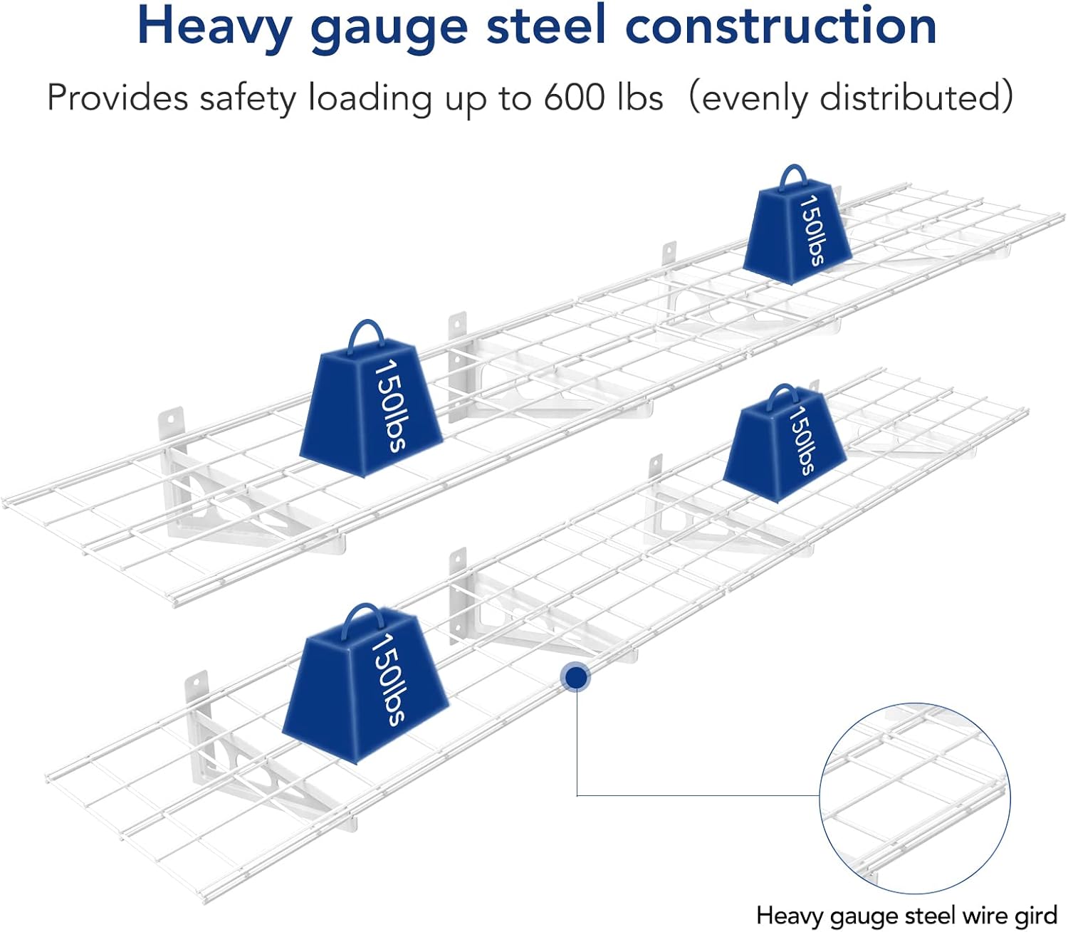 FLEXIMOUNTS 12-inch-by-72-inch Wall Shelf Garage Storage Rack Wall Mounted Floating Shelves,1x6ft ,white, 2-Pack