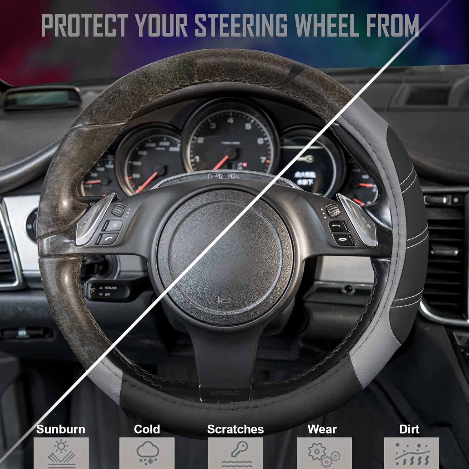 - UNIVERSAL FIT:Fits for Standard-size steering wheels with diameter 14 1/2 inch to 15 inch(37cm to 39cm)