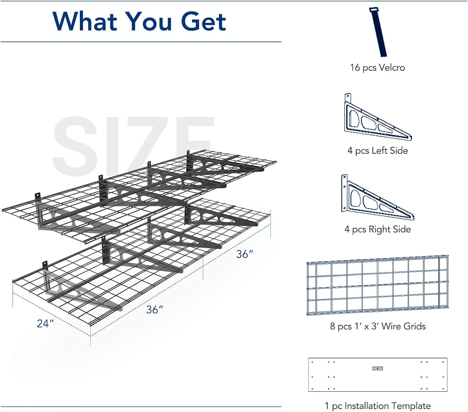 - 1600 lbs Tested, 800 lbs Total Rated Capacity: Our garage wall shelving is rigorously tested to handle a total of 1600 lbs, ensuring unmatched safety and durability. It supports up to 800 lbs in total and 200 lbs for each individual unit.