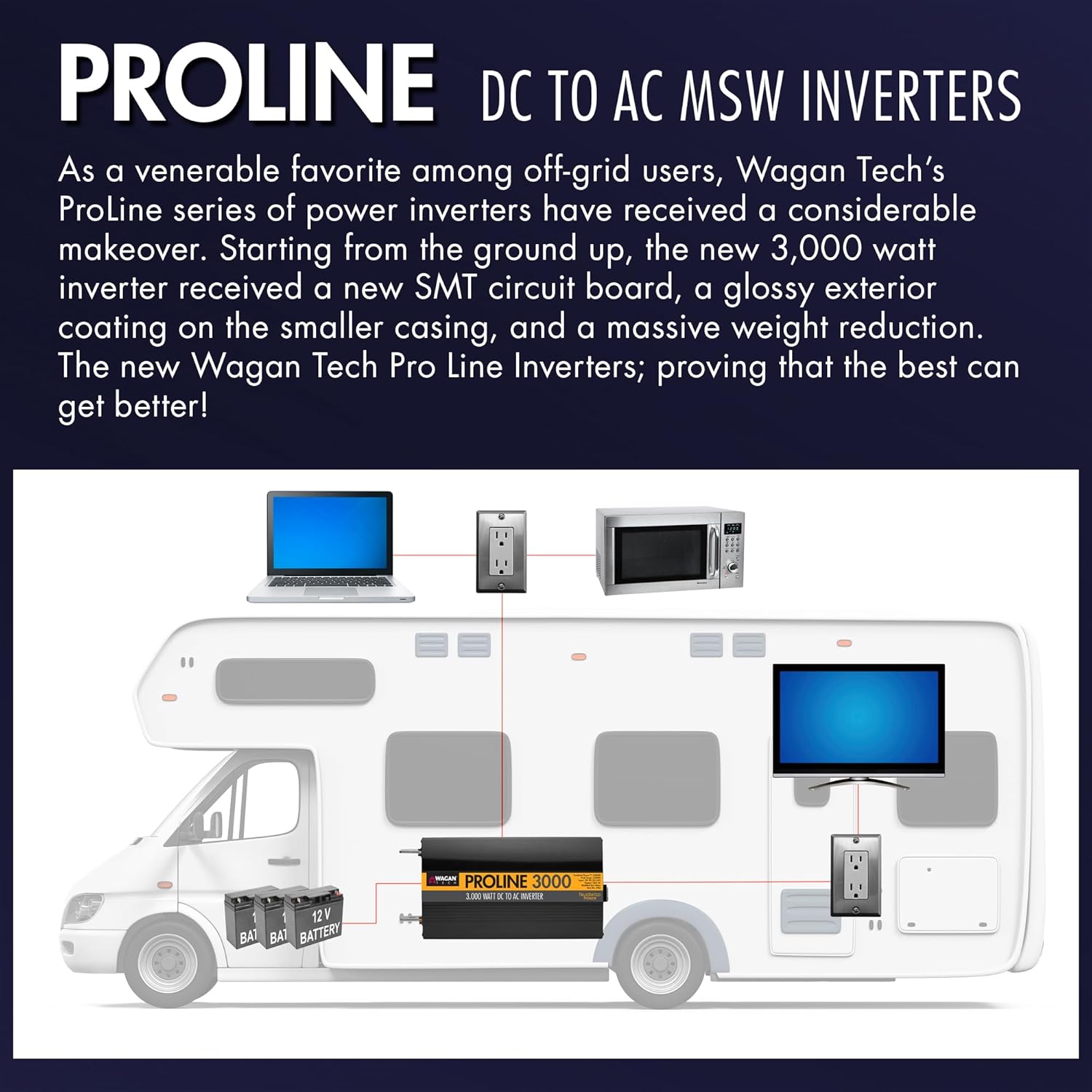 Wagan EL3742 3000 Watt Power Inverter with Remote Control 6000 Watt Surge Peak Power converter for Home RV Camping Van Life Off Grid