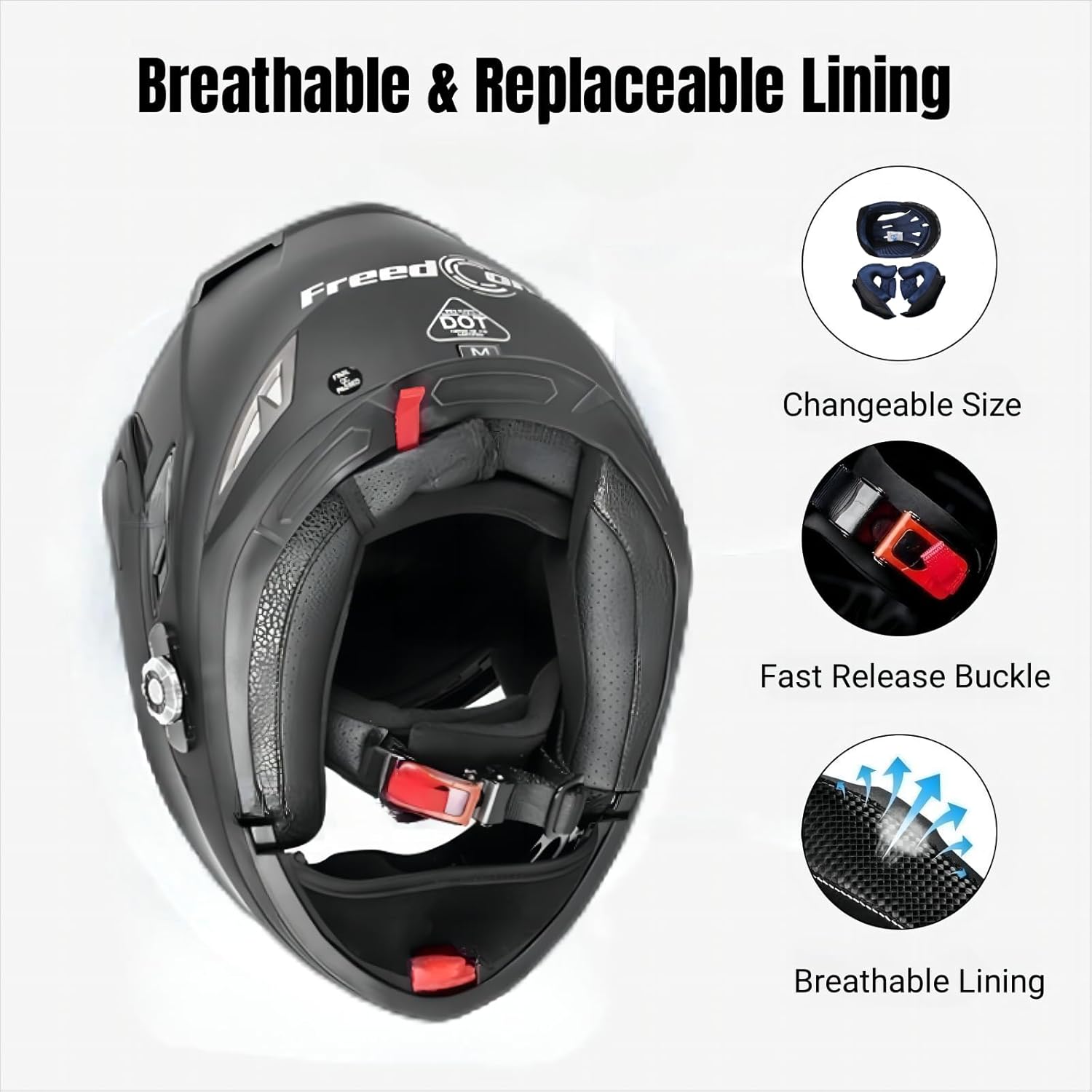 - ✪ [ DOT Modular Motorcycle Helmet ] FreedConn Bluetooth helmet supports max intercom range up to 1640 feet for 2 riders talking or 3 riders pairing. We had meets and exceeds DOT safety standards, don't worry about the safety while riding.