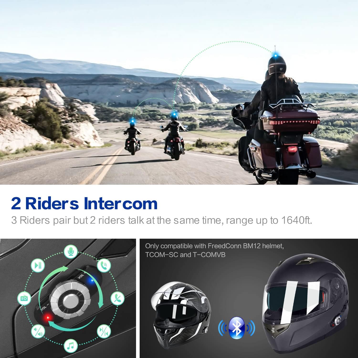 - ✪ [ DOT Modular Motorcycle Helmet ] FreedConn Bluetooth helmet supports max intercom range up to 1640 feet for 2 riders talking or 3 riders pairing. We had meets and exceeds DOT safety standards, don't worry about the safety while riding.