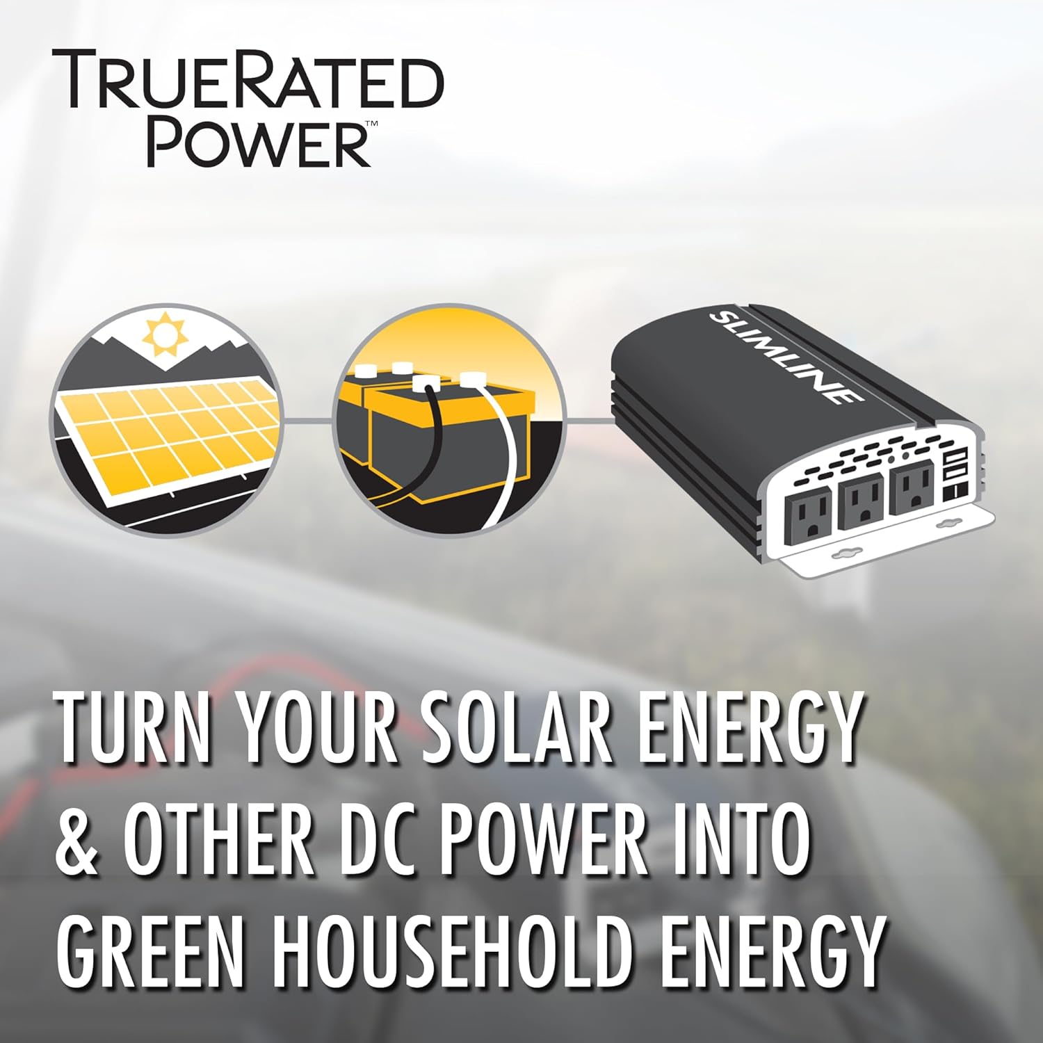 - ăENGINEERED TO PERFORMă - In your vehicle, boat, motorcycle, RV, truck, RV, motorhome, campground, kids soccer games or anywhere you need to convert DC (battery) power to AC (household) power is where the SlimLine inverter will shine!