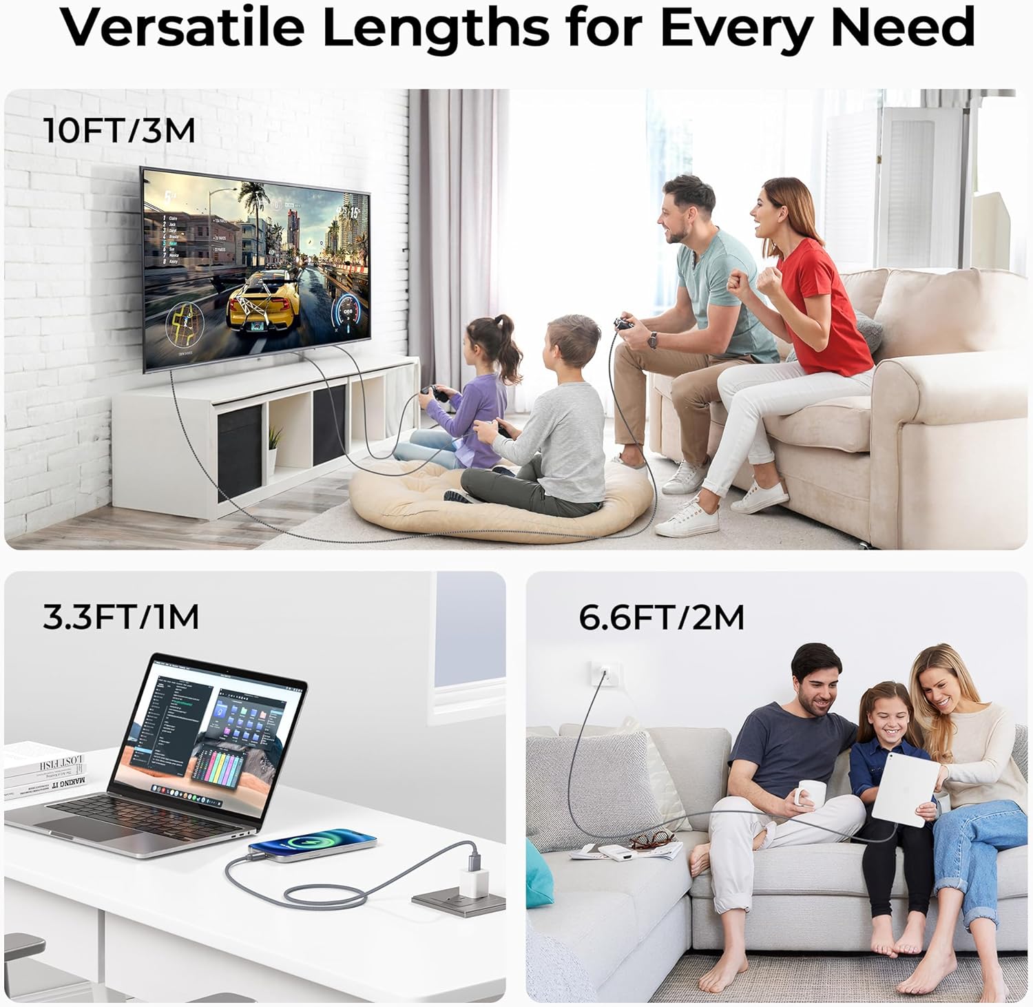 - β BENDING WITHOUT BREAKING β --- Featured with double-braided nylon for a smooth touch and rugged durability to resist the bending forces that may cause damage to the wires inside. (Boasting roughly 7000+ bends lifespan).
