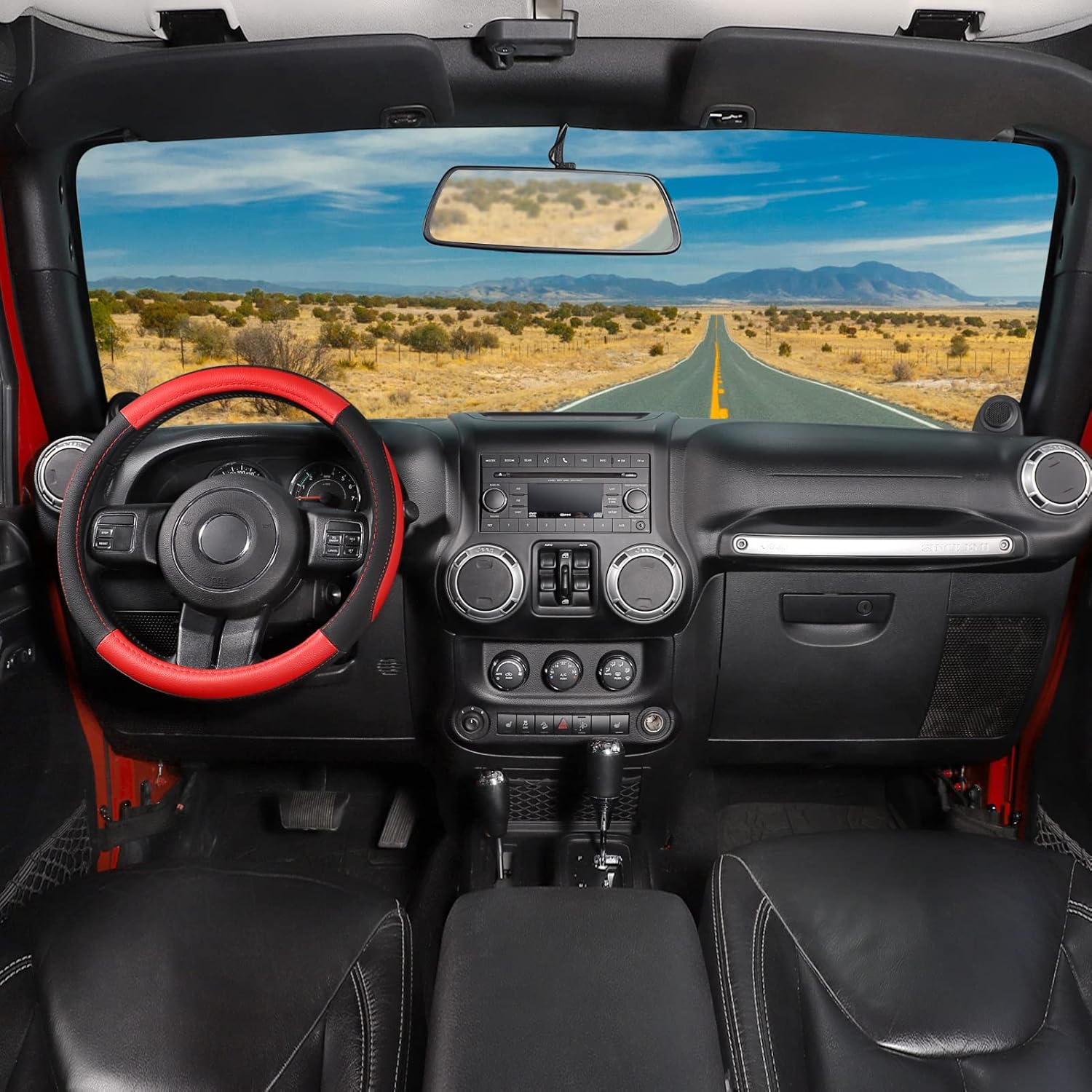 - NO MORE STICKY: The auto steering wheel cover is comfy to hold, it absorbs the hand-sweat that the summer heat causes, and allows you to grip the steering wheel much better.