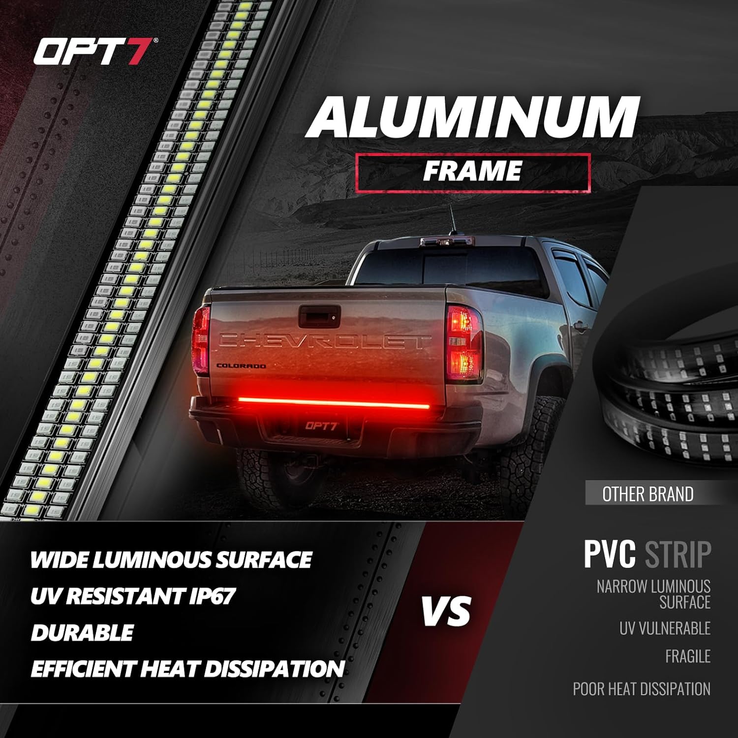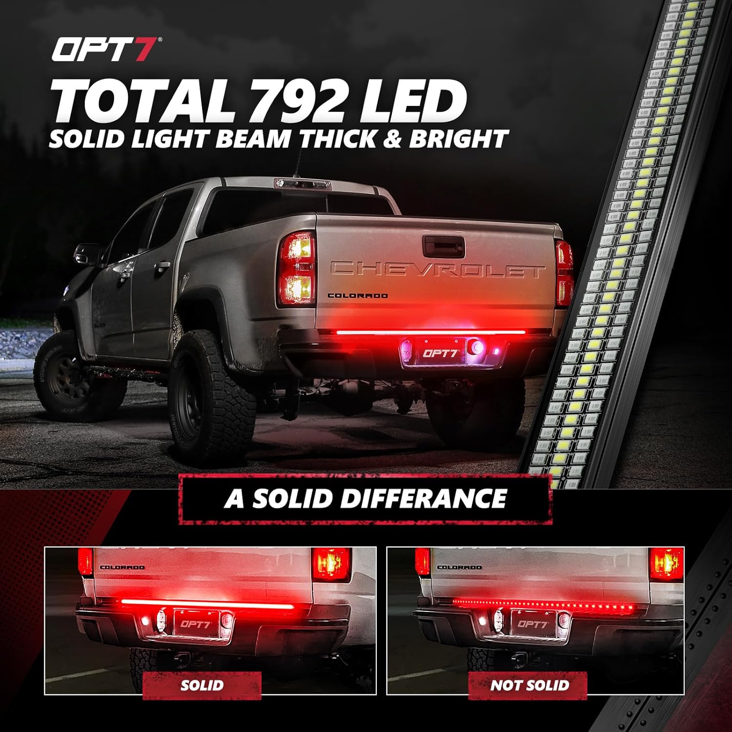 OPT7 48" Redline Triple Row LED Tailgate Light Bar w/Sequential RED Turn Signal - Weatherproof Rigid Aluminum Frame Light Strip for Colorado Canyon Frontier - Full Functions Reverse Brake Running