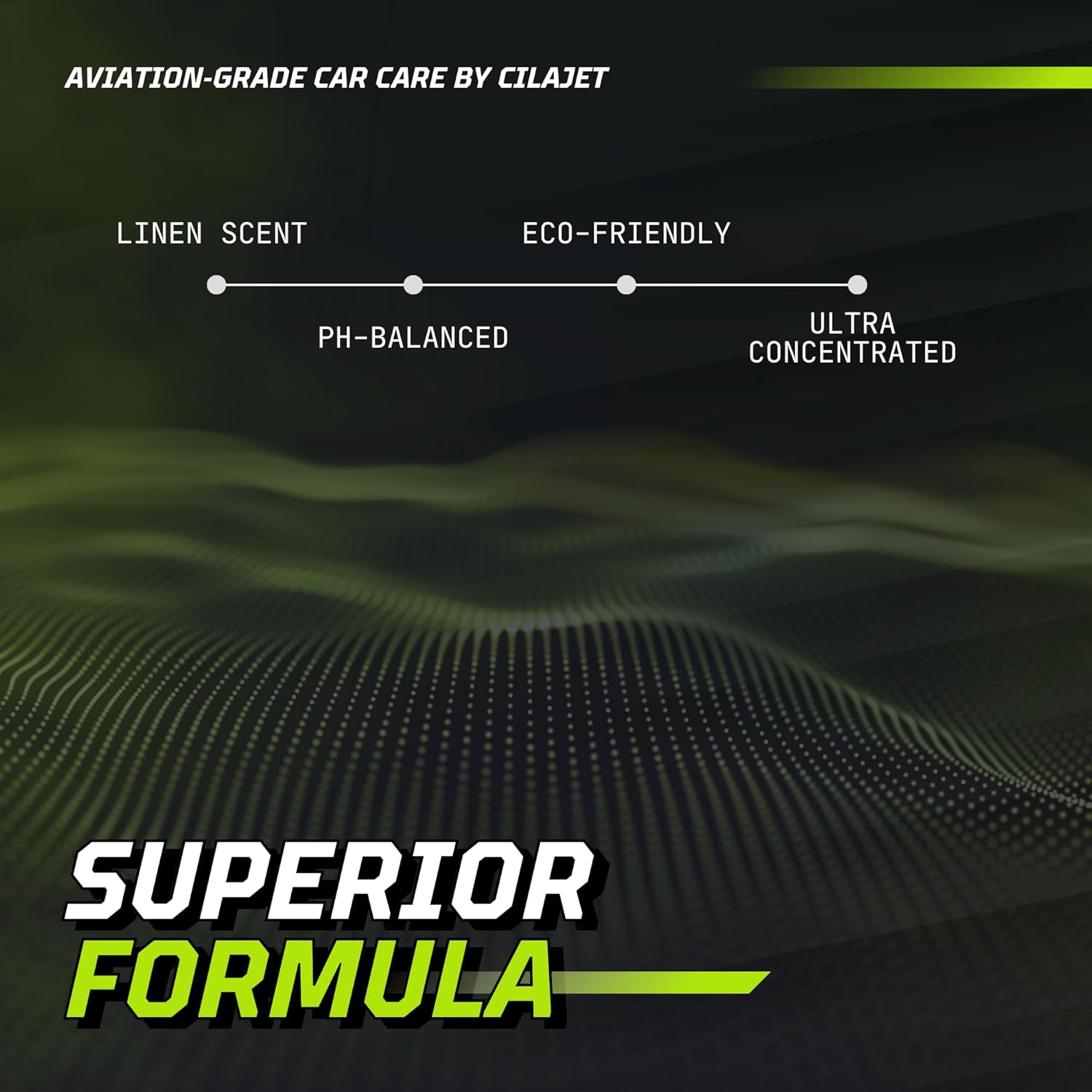 - GREAT SCENT, GREAT FEEL, GREAT SHINE: Cilajet’s Care Car-Shampoo features a light, fresh, linen scent to improve your car washing experience. It quickly rinses off and leaves a streak-free shine. You’ll love how it smells and looks!
