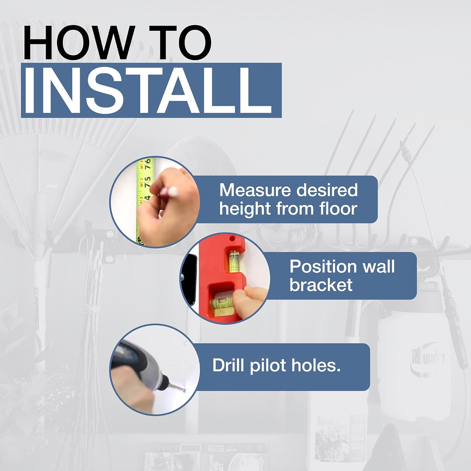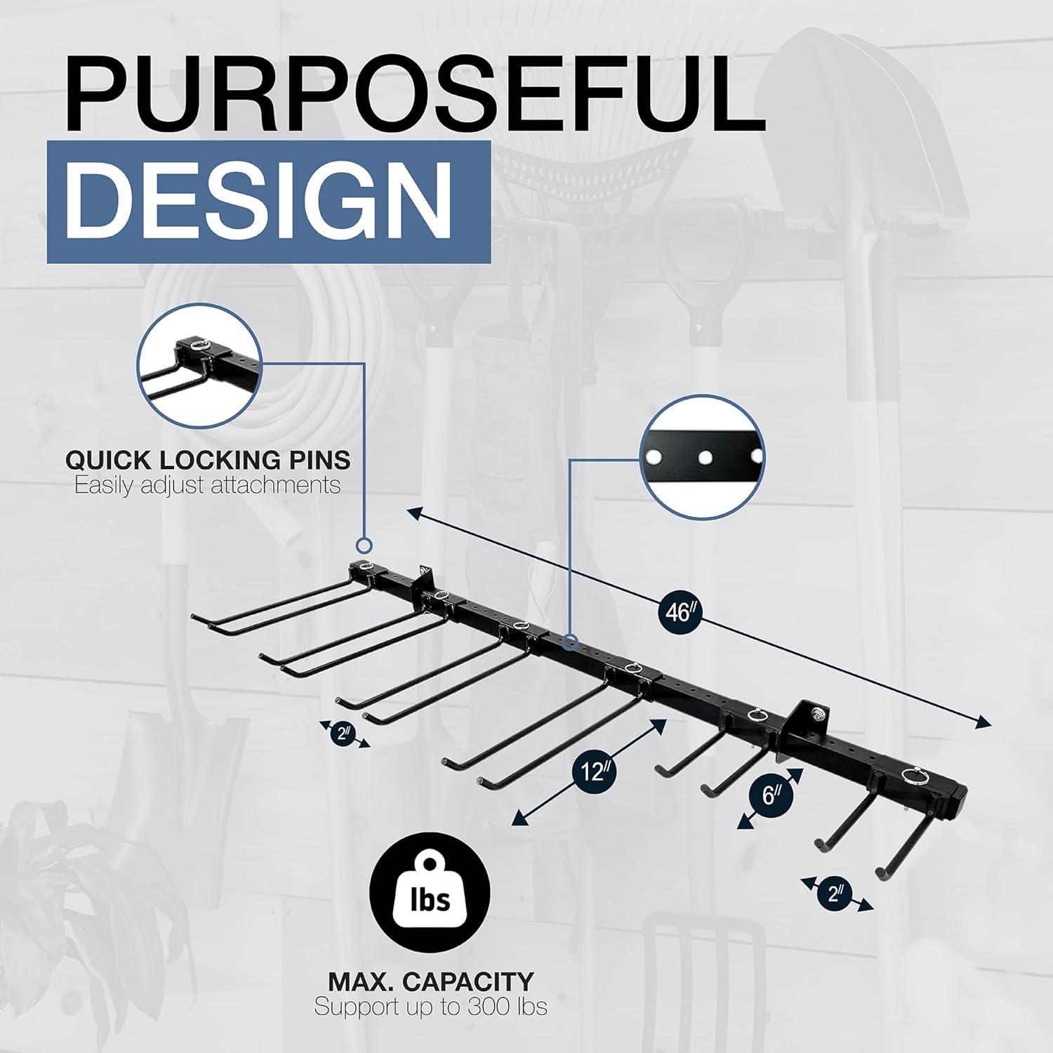 - Adjustable & Customizable Wall Mount – Features a 45-point adjustable wall track system that allows you to configure garage tool storage exactly how you need it. The independent wall brackets align with your wall studs for a secure and simple installation. Ideal for anyone seeking a garage tool organizer wall mount that fits their specific setup.
