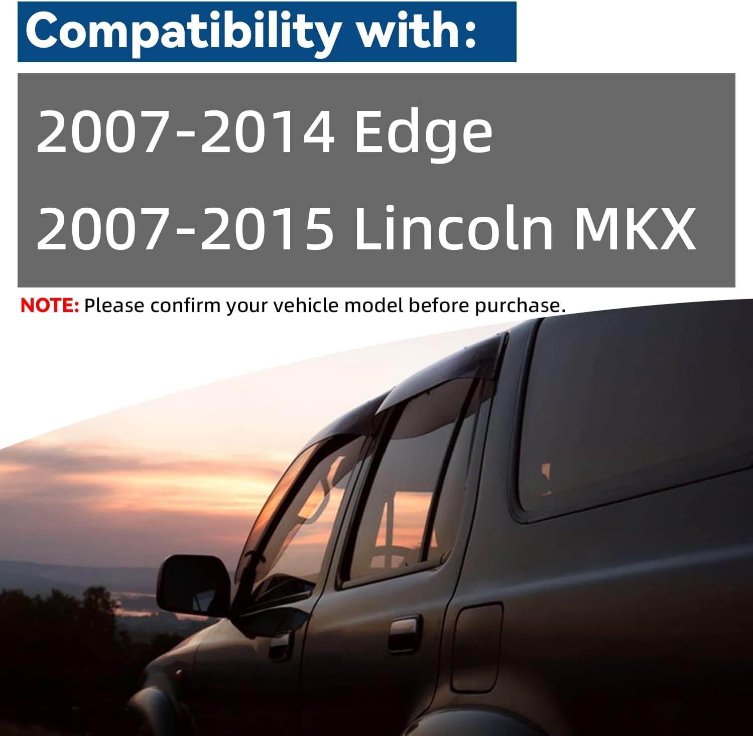 4pcs Front+Rear Smoke Sun/Rain Guard Outside Mount Tape-On Window Visors Compatible with 07-14 Edge 07-15 MKX
