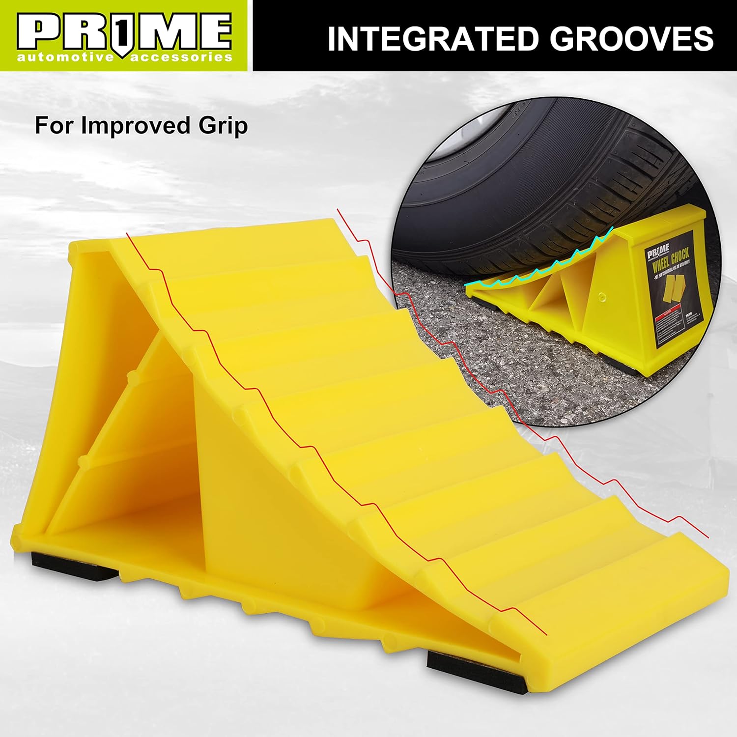 - Finger Safe: Smooth rounded edges and a wide-angle wedge design let you position chocks fast. Bright Yellow ensures instant visibility at dusk or dawn