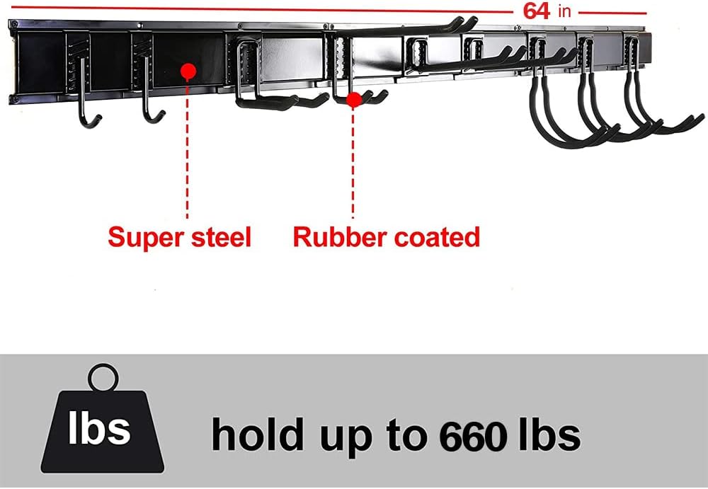 Ultrawall 13 PCS Tool Storage Rack, 64 Inches Adjustable Garage Organization Wall Mounted Storage System with 9 Hooks, Heavy Duty Steel Garden Tool Organizer Wall Holders