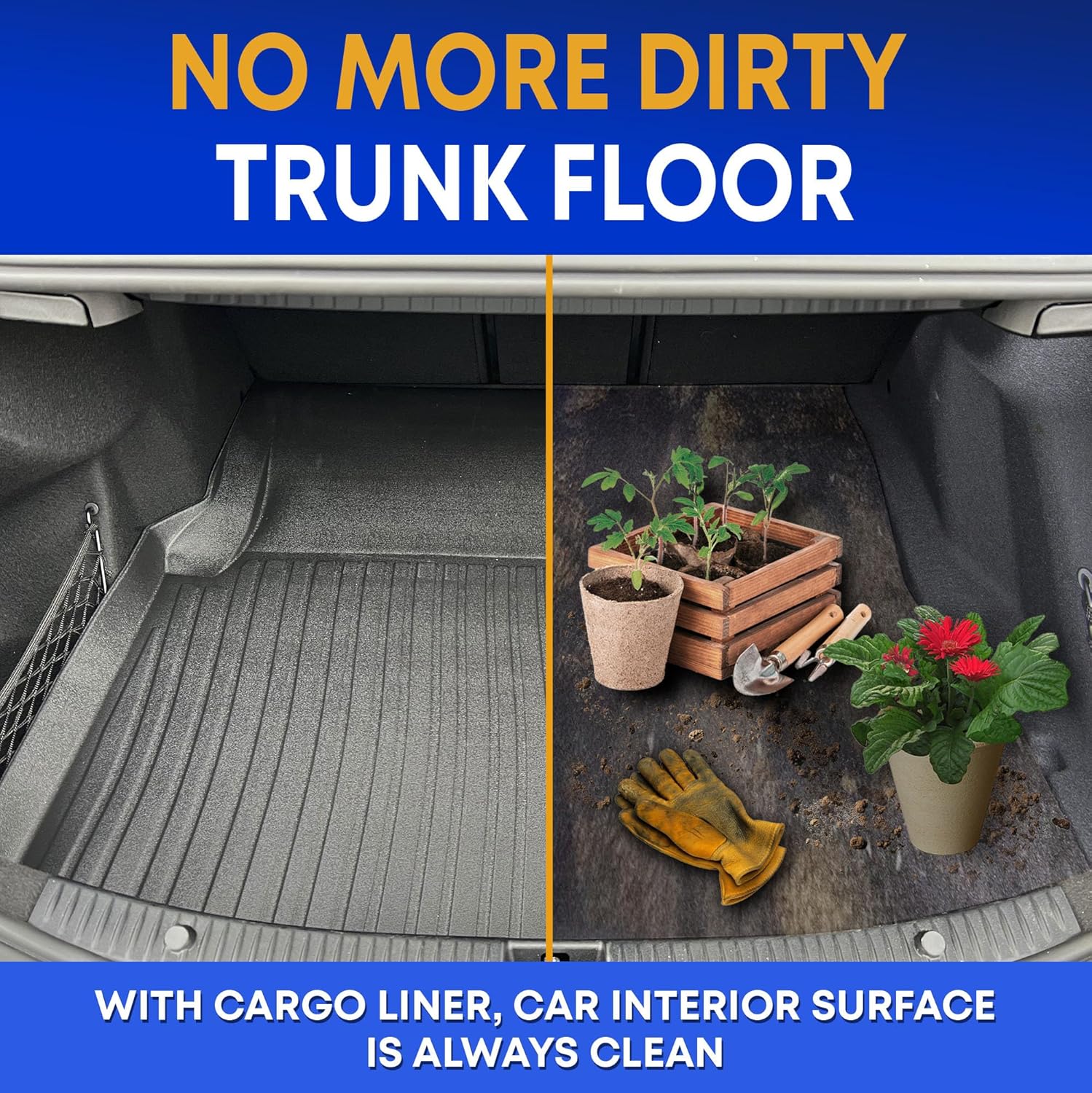 - Easy-To-Wash & Stain Resistant - The cargo mat liner for Sedan is a perfect option if you are tired of the mess in your trunk after every trip. Forget the spending hours cleaning the trunk, our mat is easily washable, just rinse it with running water. The surface is stain-resistant, which makes it looks new even after years of use!