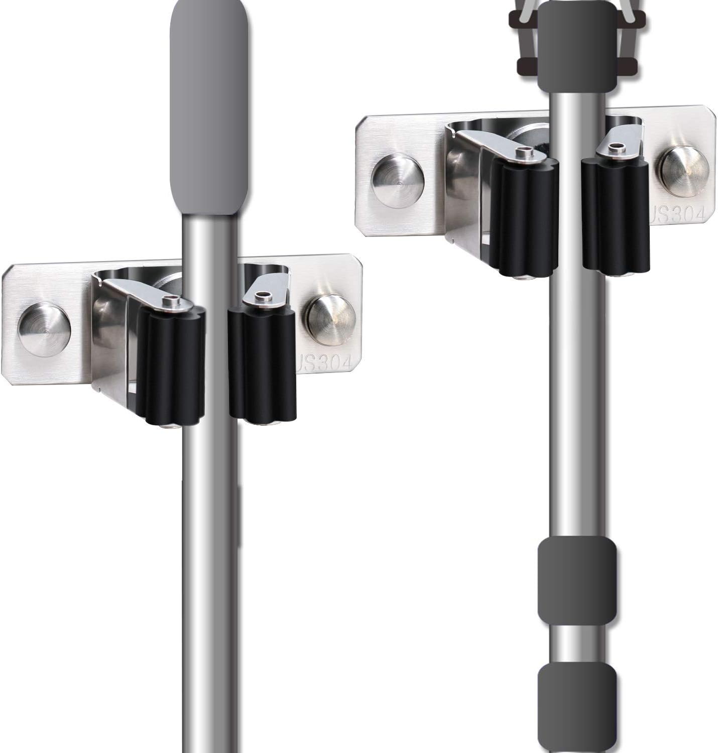 Mop and Broom Holder Wall Mount, 2PCS Heavy Duty Stainless Steel Broom Hanger Wall Mounted Broom Organizer Garage Organization Tool Organizer Storage for Laundry Room Home Garden Garage
