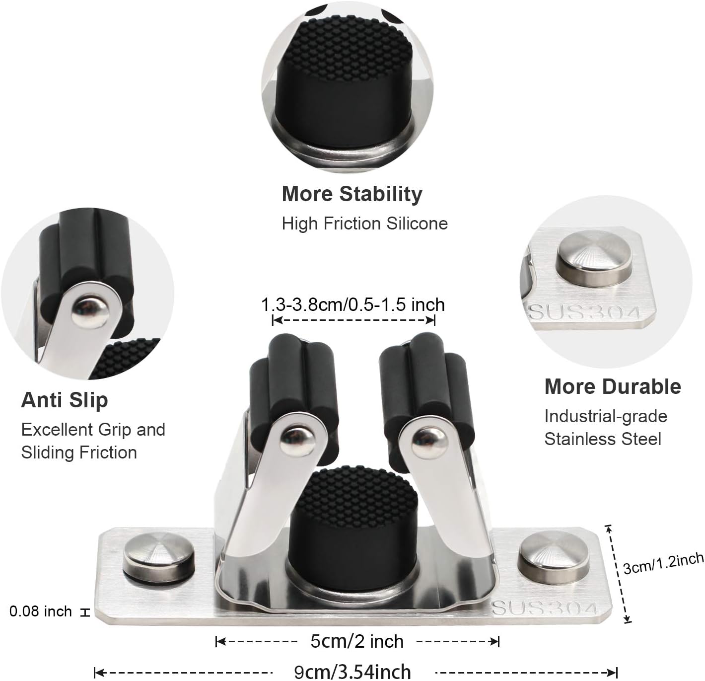 - ăSTRONG AND STURDYăThe storage hanger is made of SUS 304 stainless steel and triangle-buckle & petal-shaped gear adjust size automatically based on different thickness of the handles to prevent object sliping, can hold up to 30 pounds in total,more strong and sturdy than plastic holder.