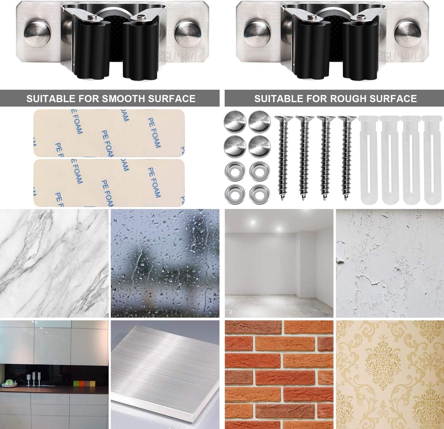 - ă2 WAYS TO INSTALLăWe offer two way to install:Screws drilling and self-adhesive.You can choosing the suitable install solution according to the intallation surface:Self-adhesive for smooth surface,Screws drilling for rough surface.It also can be disassembled and reused.