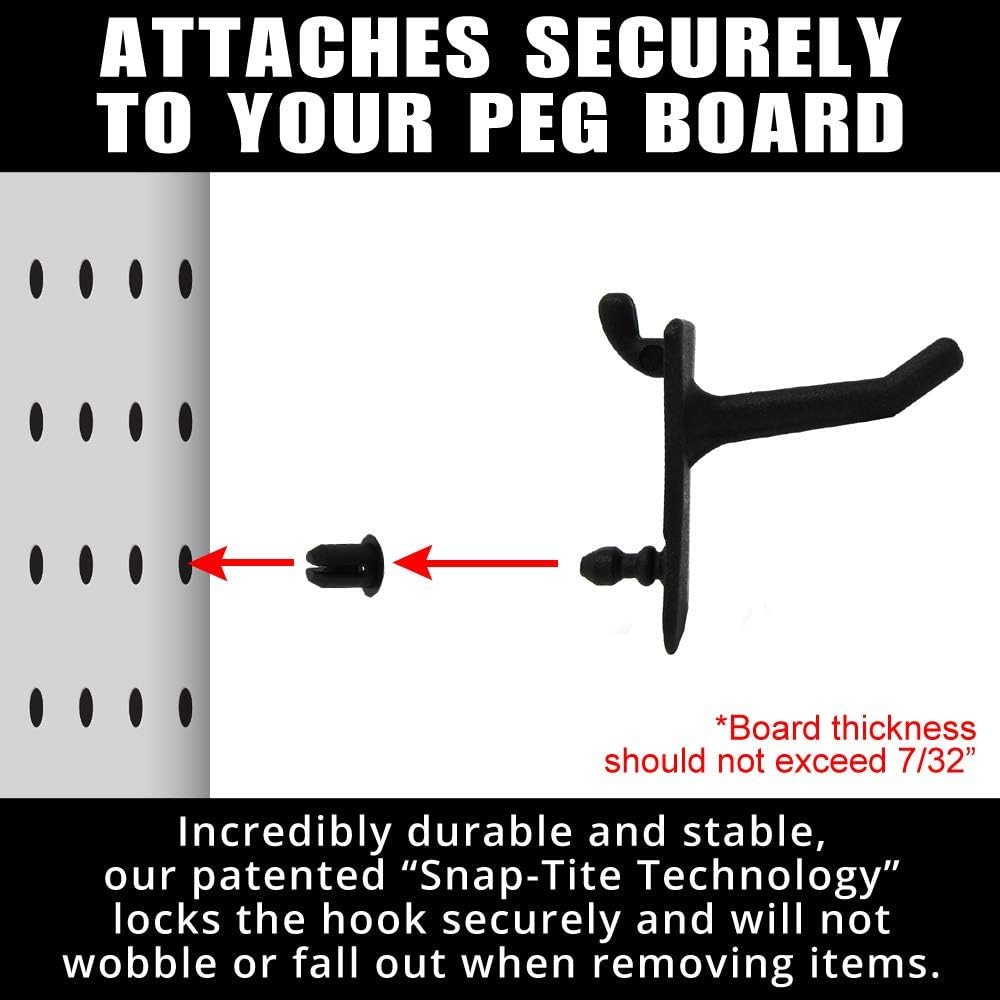 - Patented Snap-Tite Technology locks Hooks securely onto most “wood fiber” pegboards.