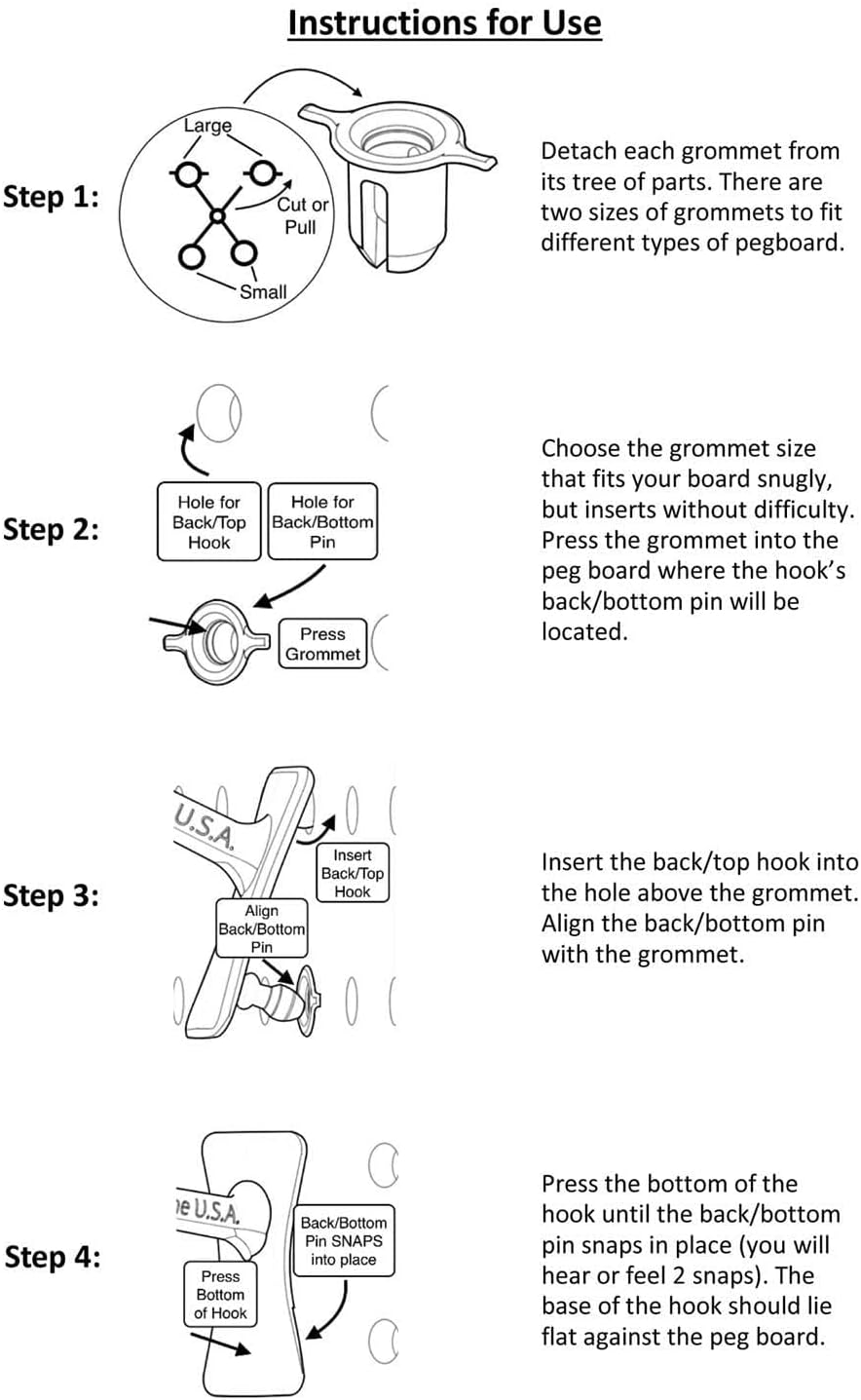 - Patented Snap-Tite Technology locks Hooks securely onto most “wood fiber” pegboards.