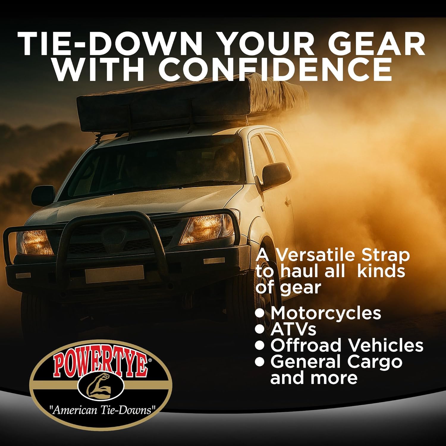 - TRUST POWERTYE MANUFACTURING, AN AMERICAN COMPANY: Tie-Down Straps are covered by our PowerTye Lifetime Warranty, giving you peace of mind when you’re travelling down the road.