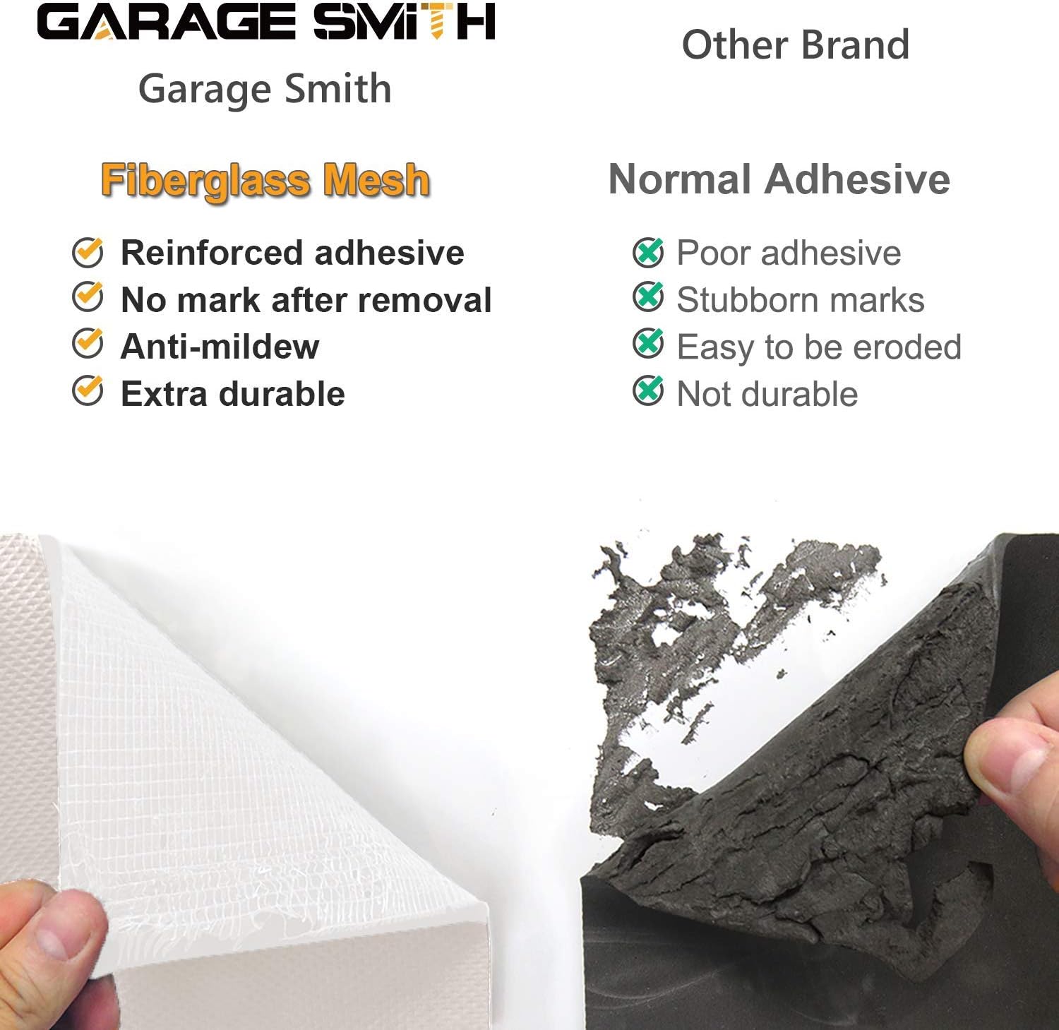 - Fiberglass Mesh Adhesive Structure β The adhesive force is reinforced by its unique integrated back adhesive structure. The interlaced fiberglass allows the wall protectors to be removed without tearing the soft protector or leaving marks on the wall. The non-tearing self-adhesive cover can be peeled off easily.