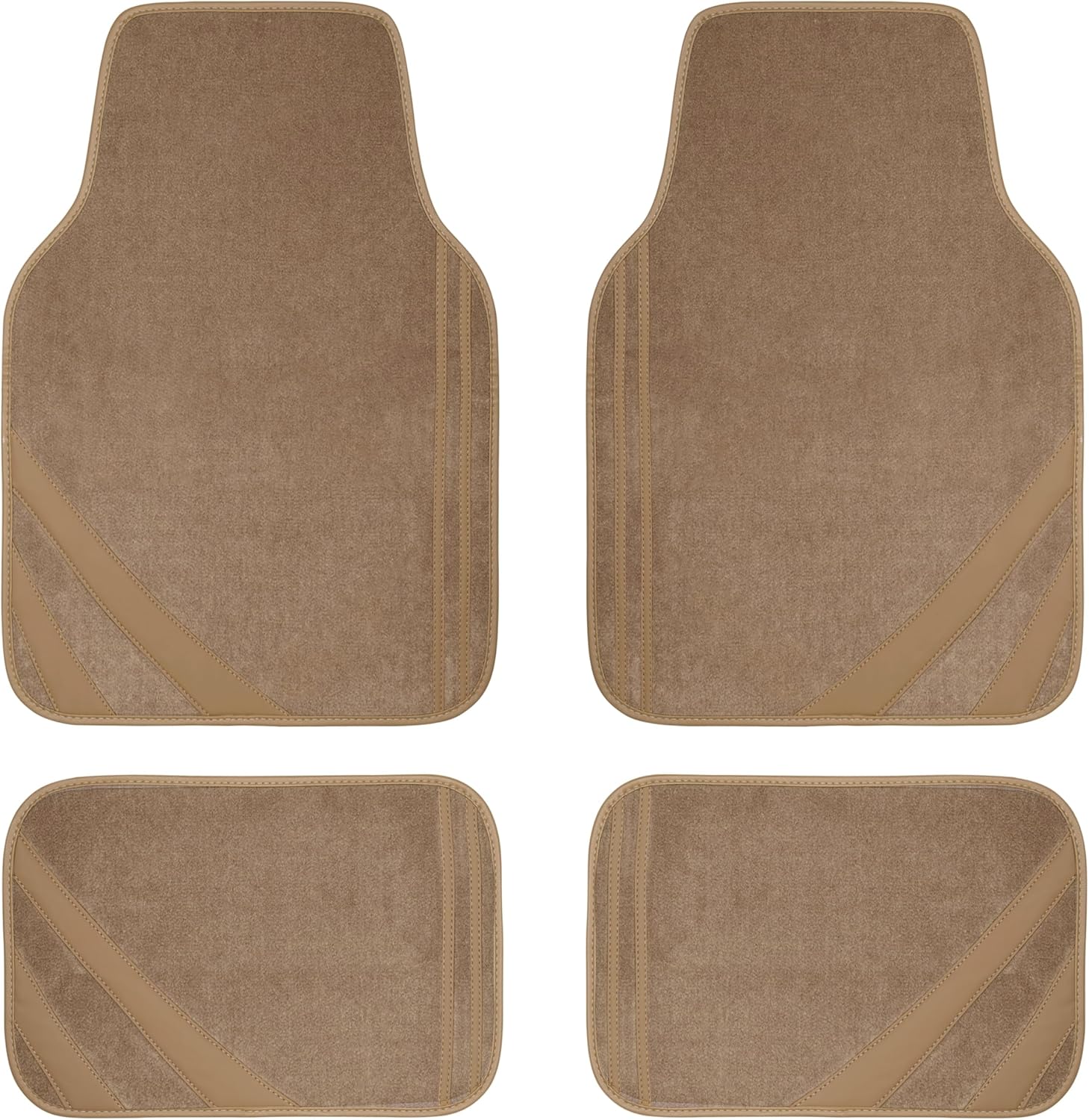 - High Quality- The edges and lines are made of leather and double stitched for superior quality. The center carpet portion is soft and thick, which traps dust and dirt well and Protect your vehicle's flooring against spills, stains, dirt and debris.
