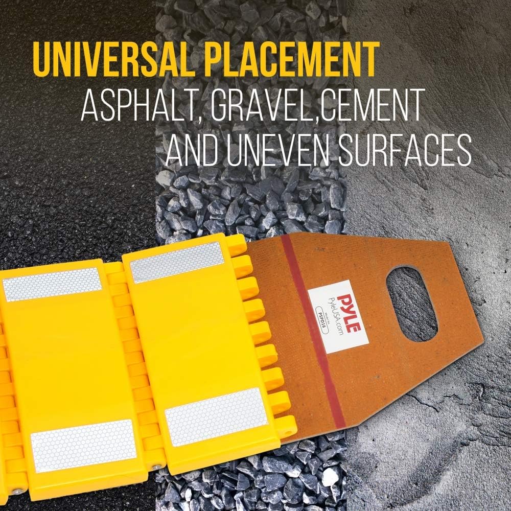 - UNIVERSAL PLACEMENT: The Pyle Vehicle Speed Bumps for driveway are designed to temporarily control traffic flow. Unlike concrete bumps, it can be deployed and retrieved in seconds. It is designed to easily conform to virtually any road surface