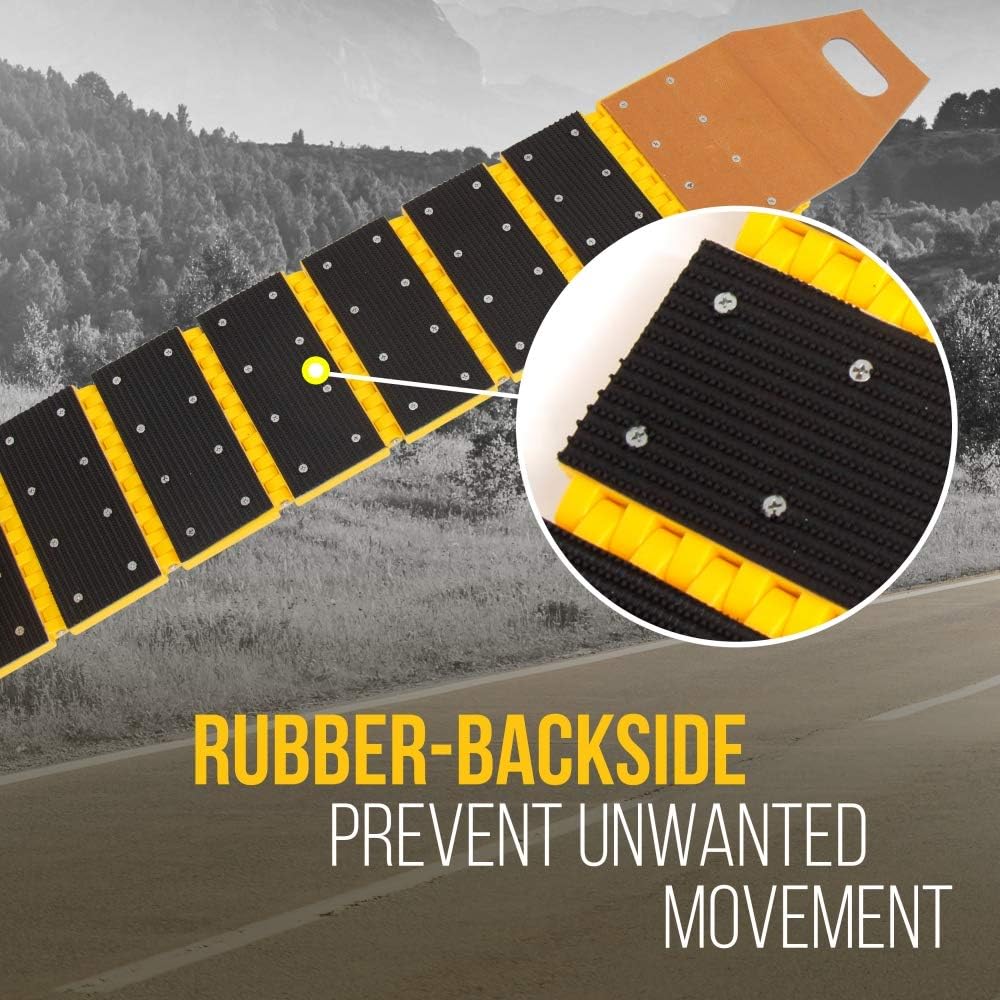 - HEAVY DUTY: The long ramp car traffic guard features durable and reliable construction from high quality reinforced polypropylene in bright yellow for increased visibility. It is backed w/ rubber matting, keeping the speed bump securely in place
