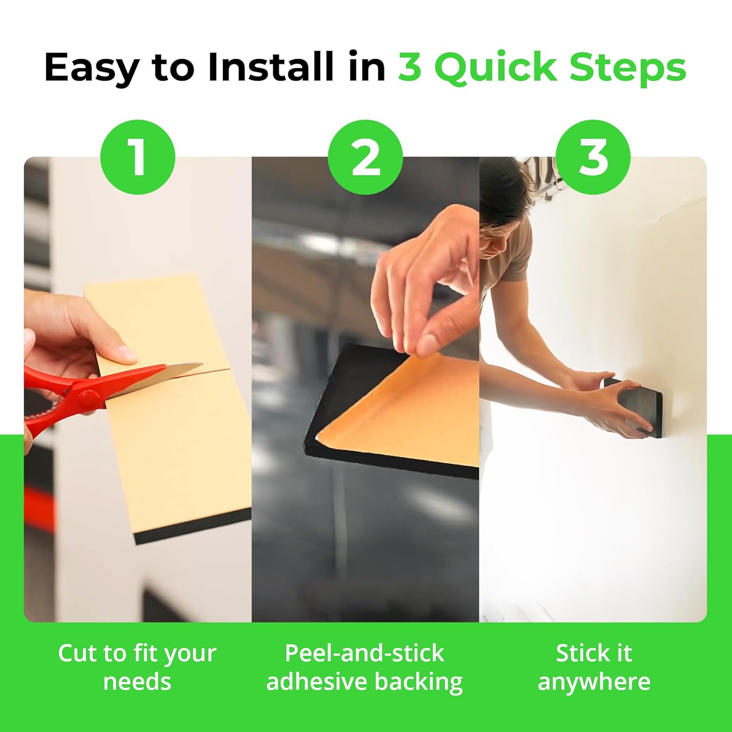 XCEL Foam Rubber Protector Panels – 4 Pack of Versatile Marine Foam Pads – Ideal for Wall Protection, Garage Parking Aids, Car Door & Bumper Padding, Anti Vibration, Insulation DIY Projects - Black