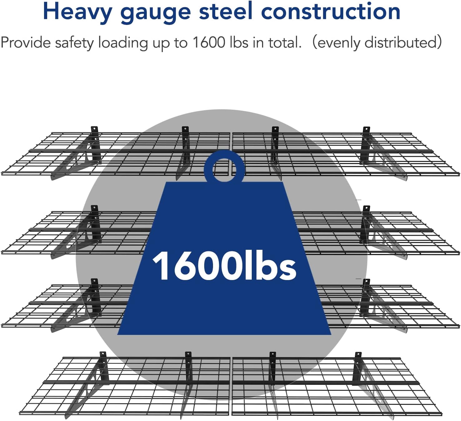 FLEXIMOUNTS 4-Pack 2x6ft 24-inch-by-72-inch Wall Shelf Garage Storage Rack Floating Shelves, Black