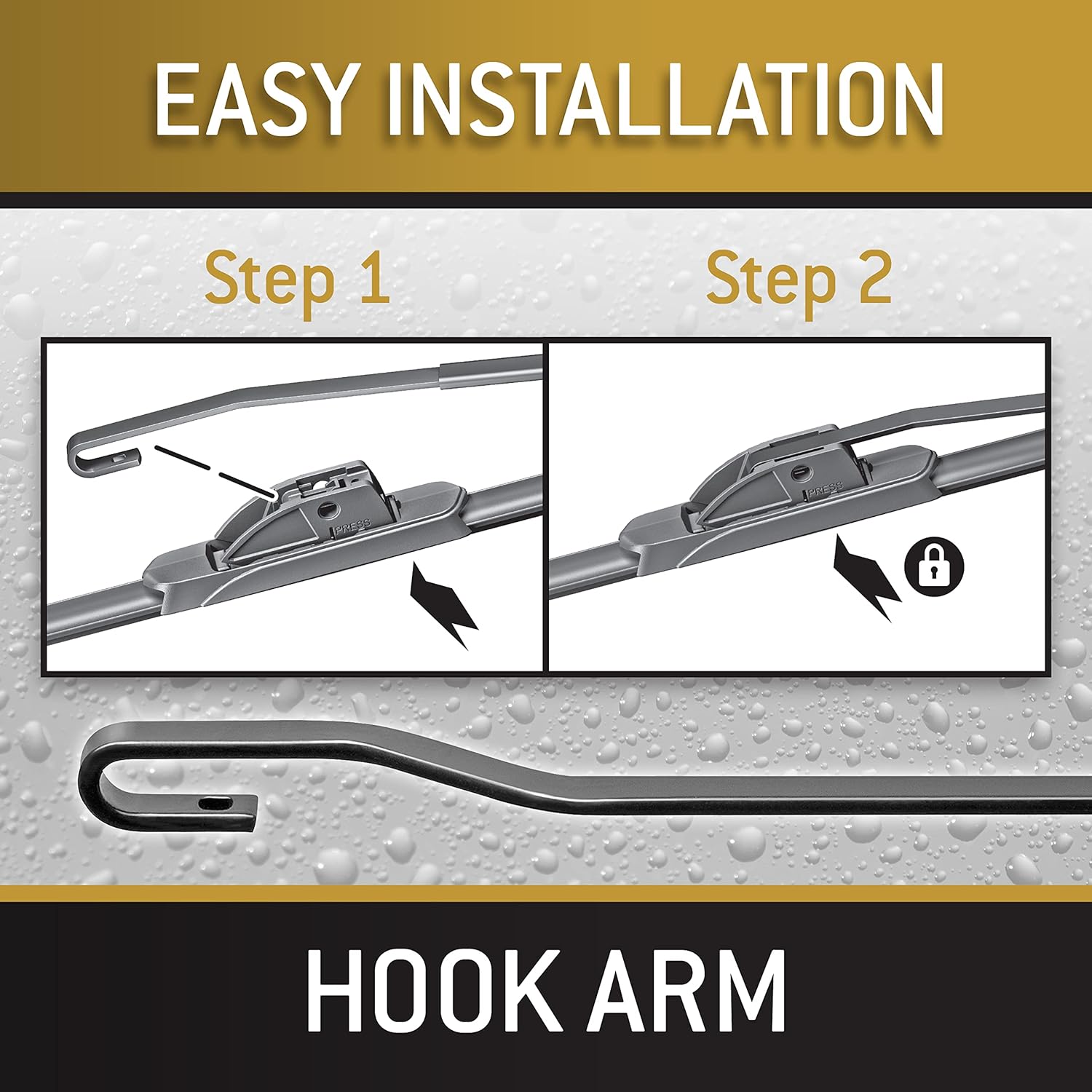 - EASY INSTALLATION: This wiper blade pair is easy to install for a quick DIY wiper blade replacement. These blades conform snugly onto the curves of the windshield for a superior fit. Instructions included.