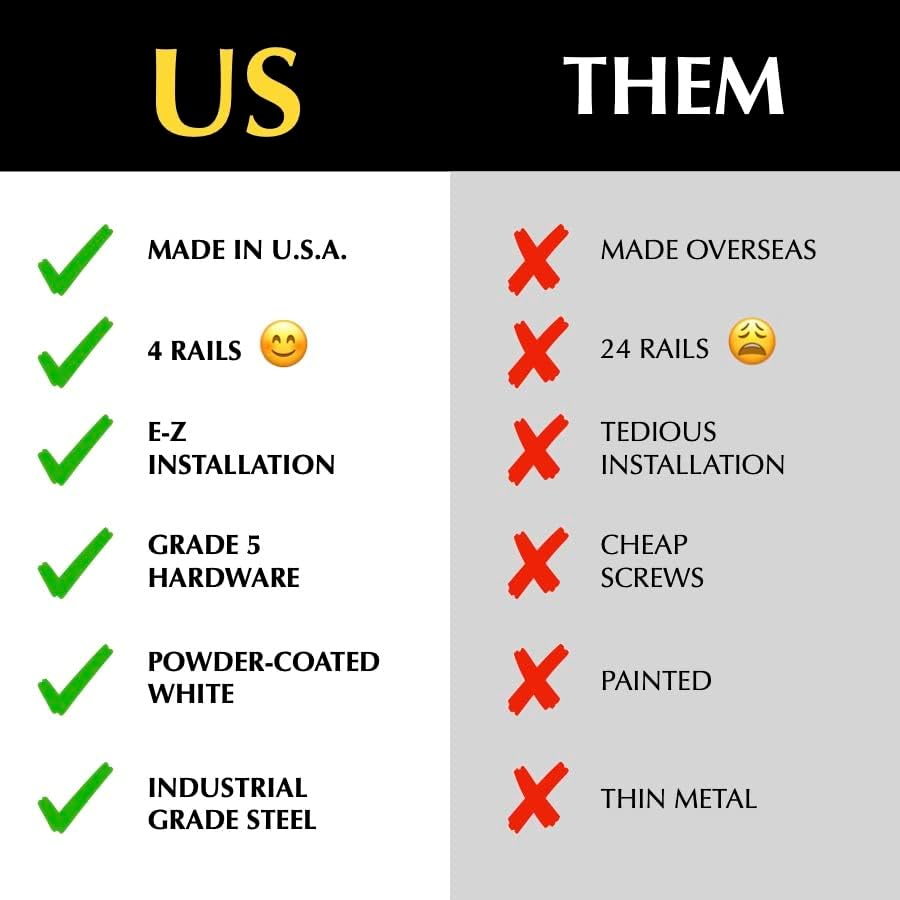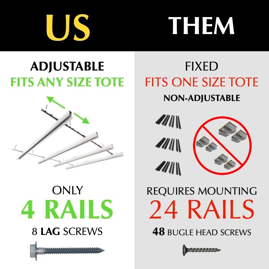 Tote Slide PRO – Made in USA | Heavy-Duty Alloy Steel Overhead Rack – Organize Up to 15 Storage Tote Bins on Garage Ceiling – 88” x 80” x 3.5”, White – Space-Saving Design