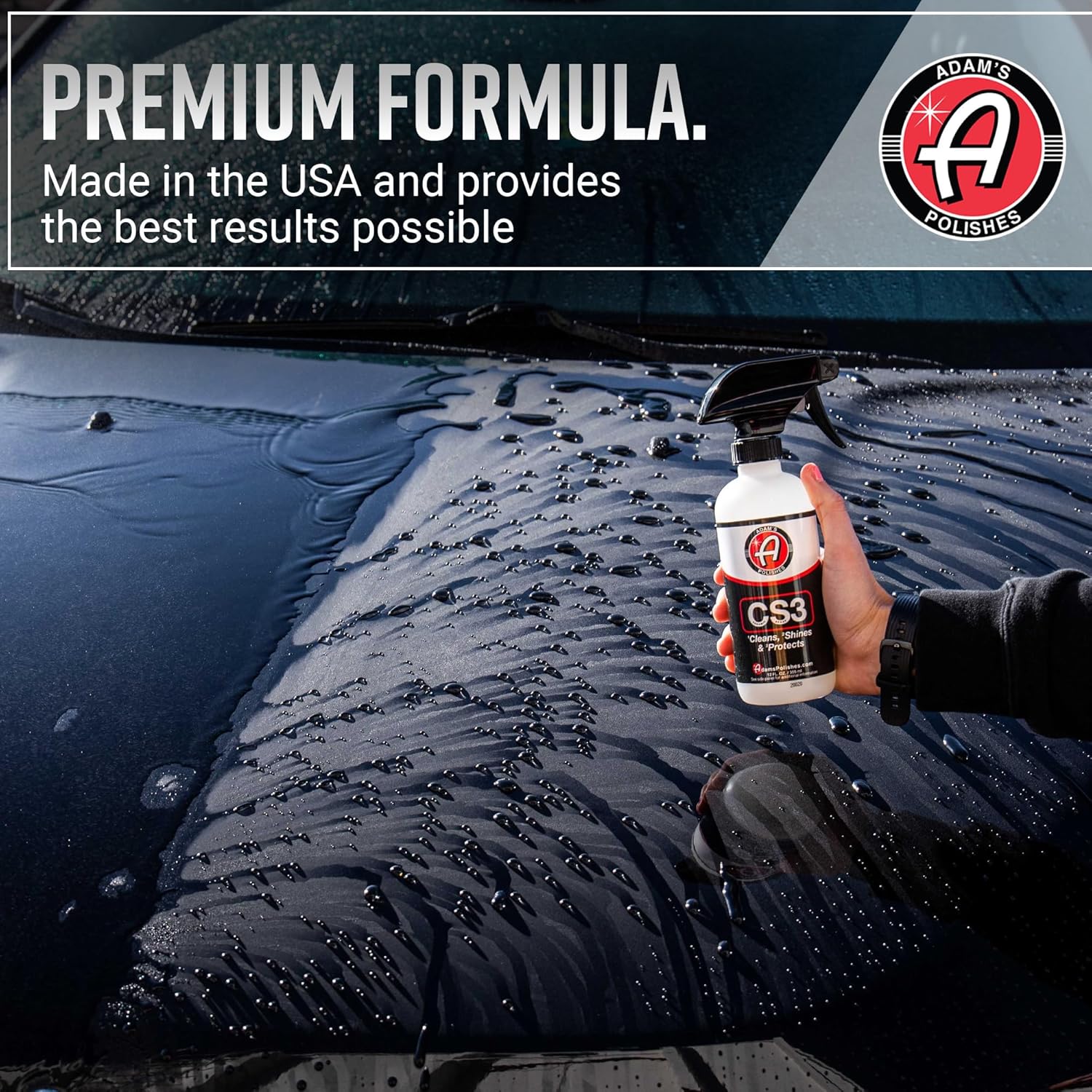- ✅ CERAMIC INFUSED 3 IN 1 ADVANCED FORMULA! Adam’s CS3 provides a waterless wash & car wax spray, coat and shine polish, water-based ceramic coating hydrophobic spray, all in one convenient, innovative product.