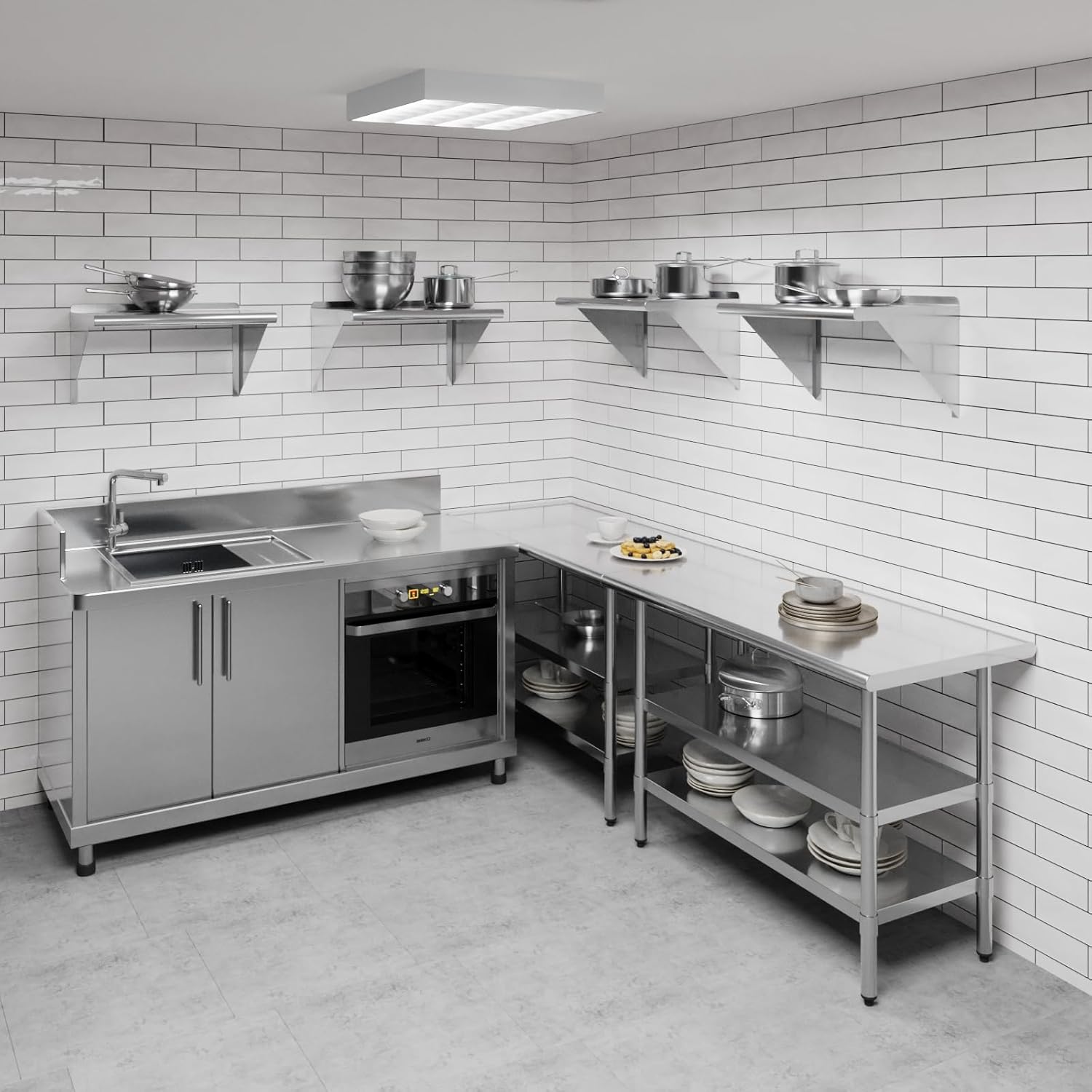 - Its professional, modern and sleek design makes this metal floating shelf perfect for use in any residential or commercial kitchen, food truck, garage, closet, laundry room, utility and equipment room, lab, appliance shelf for toaster and microwave, etc.