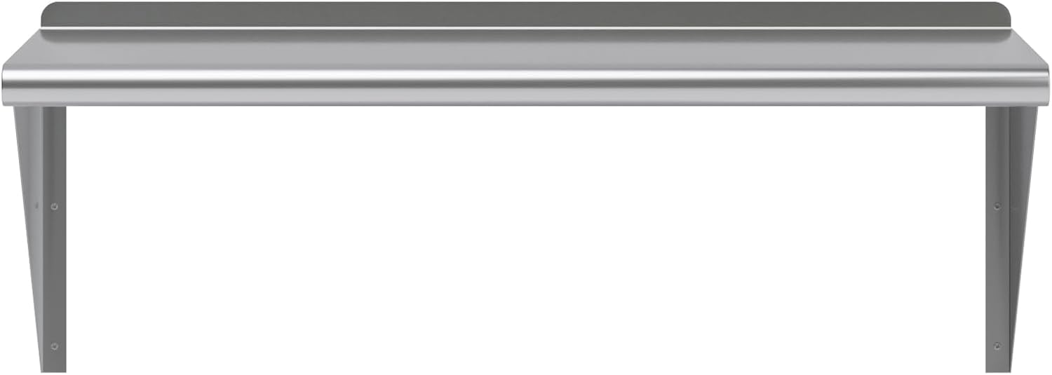 - This heavy-duty multifunctional stainless wall shelf is made with 18 gauge stainless steel and can hold up to 310 lbs of weight. The design features a 1" backsplash and bullnose edge. It's made with durable welded corners and support brackets.