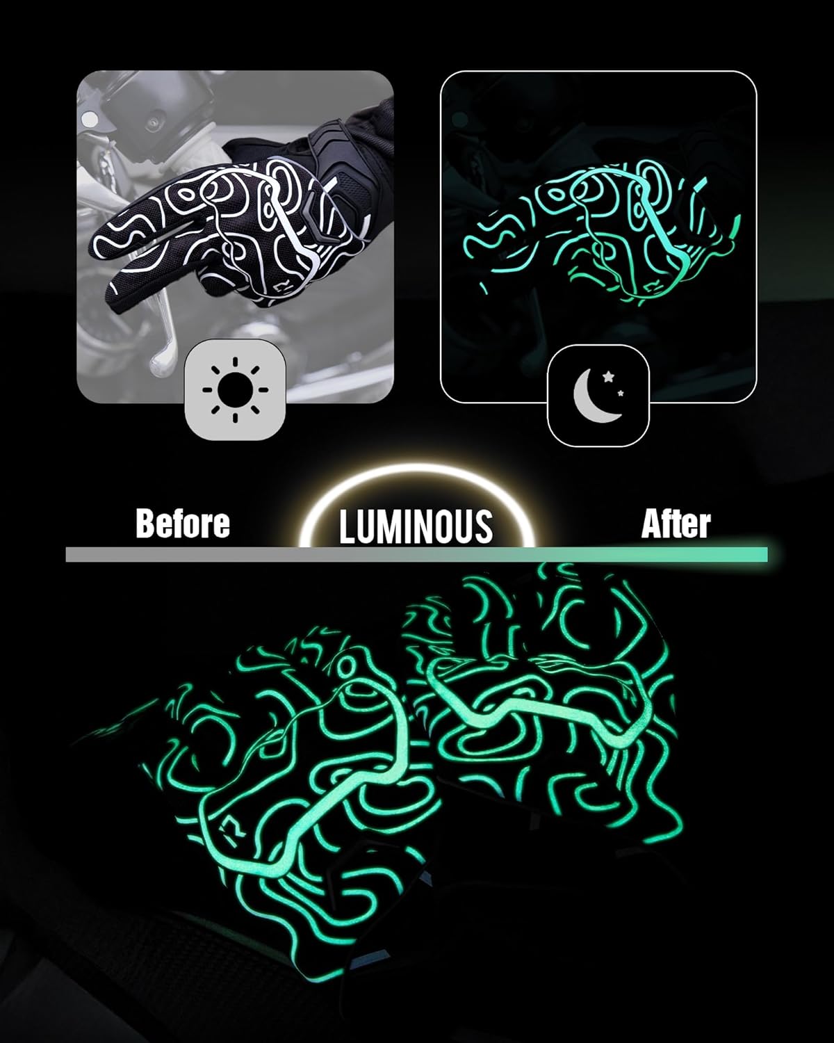 - 4.Keep Cool - The motorcycle gloves are made of breathable material,with air vents for better air flow, protect you and keep your hands cool in hot weather,no more sweaty hands,suitable for using at all seasons.