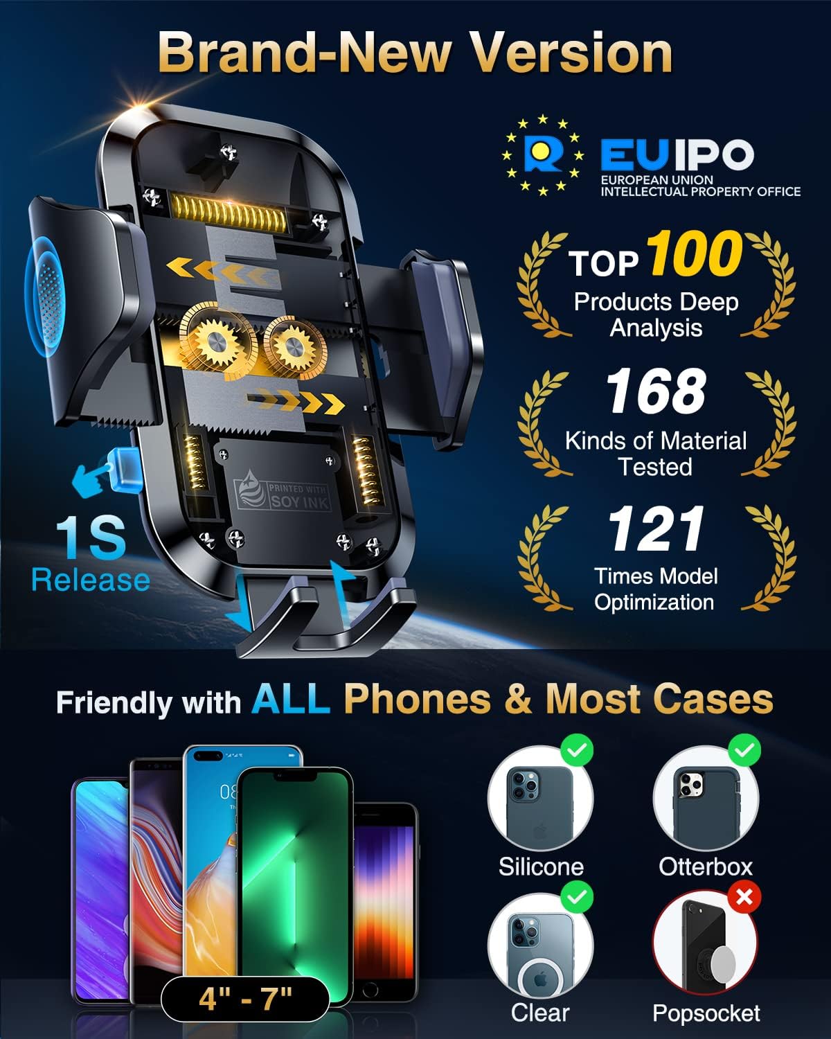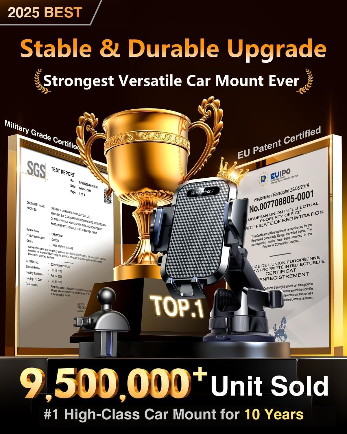 - ăPro VersionďźVANMASS's Best ChoiceăVANMASS has been dedicated to car phone holder for 8 years, always leading the car holder industry in all aspects: safety, stability, durability, compatibility, multi-scene adaptability,climate friendly. The pro version mount enables the cutting-edge design team to create the best choice for customers- highest rating, most customers' preference, EU Intellectual Property Patent (No.007708805-0001), Military Grade Cert (No.GZMR220601855501), CP65/REACH/ROHS