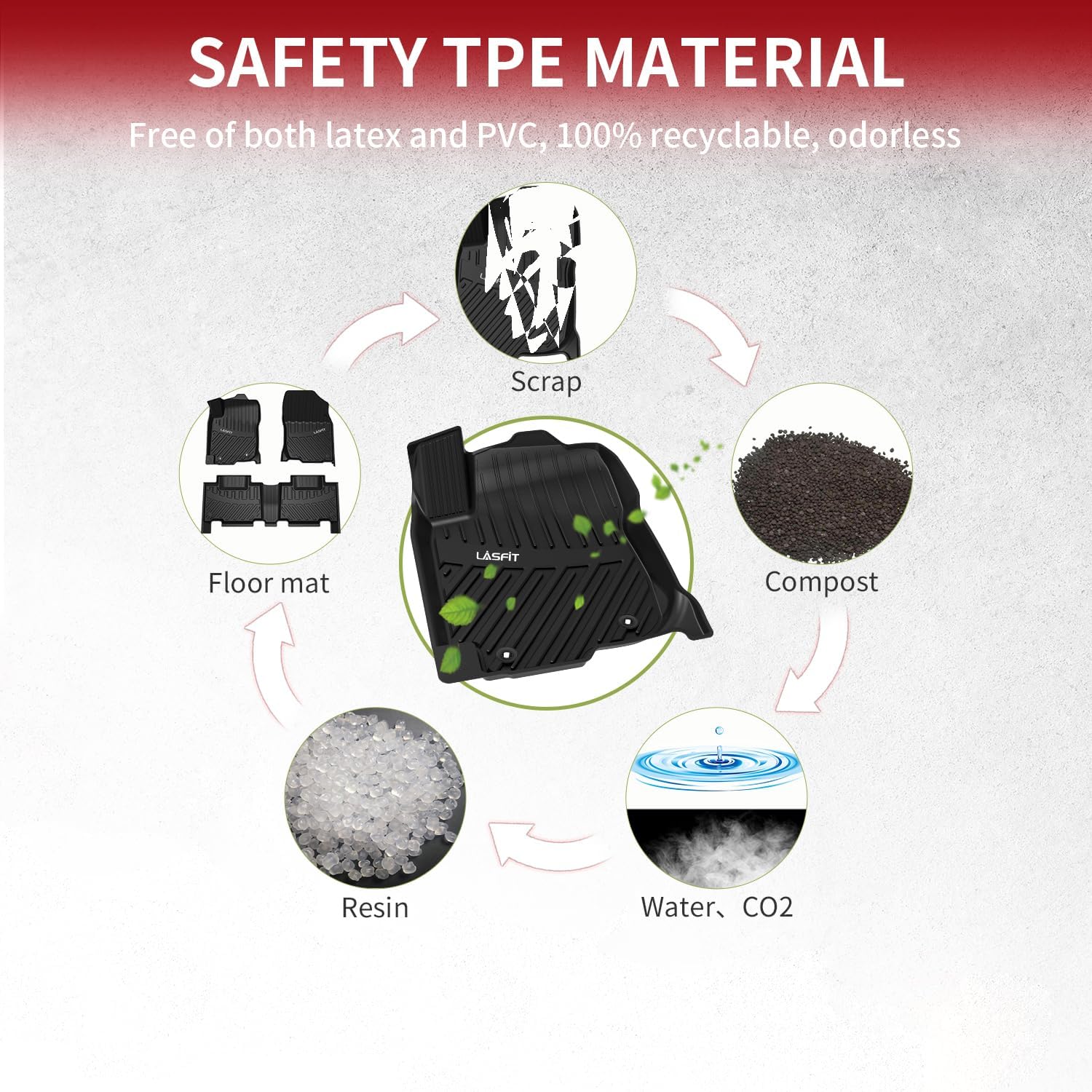 - ENVIRONMENT FRIENDLY- The All Weather RAV4 mats use elastic TPE (Thermoplastic Elastomer), No foul odor is produced even at high temperatures. soft touch and exquisite finish. The Lasfit RAV4 floor mats are skid-proof and recyclable.