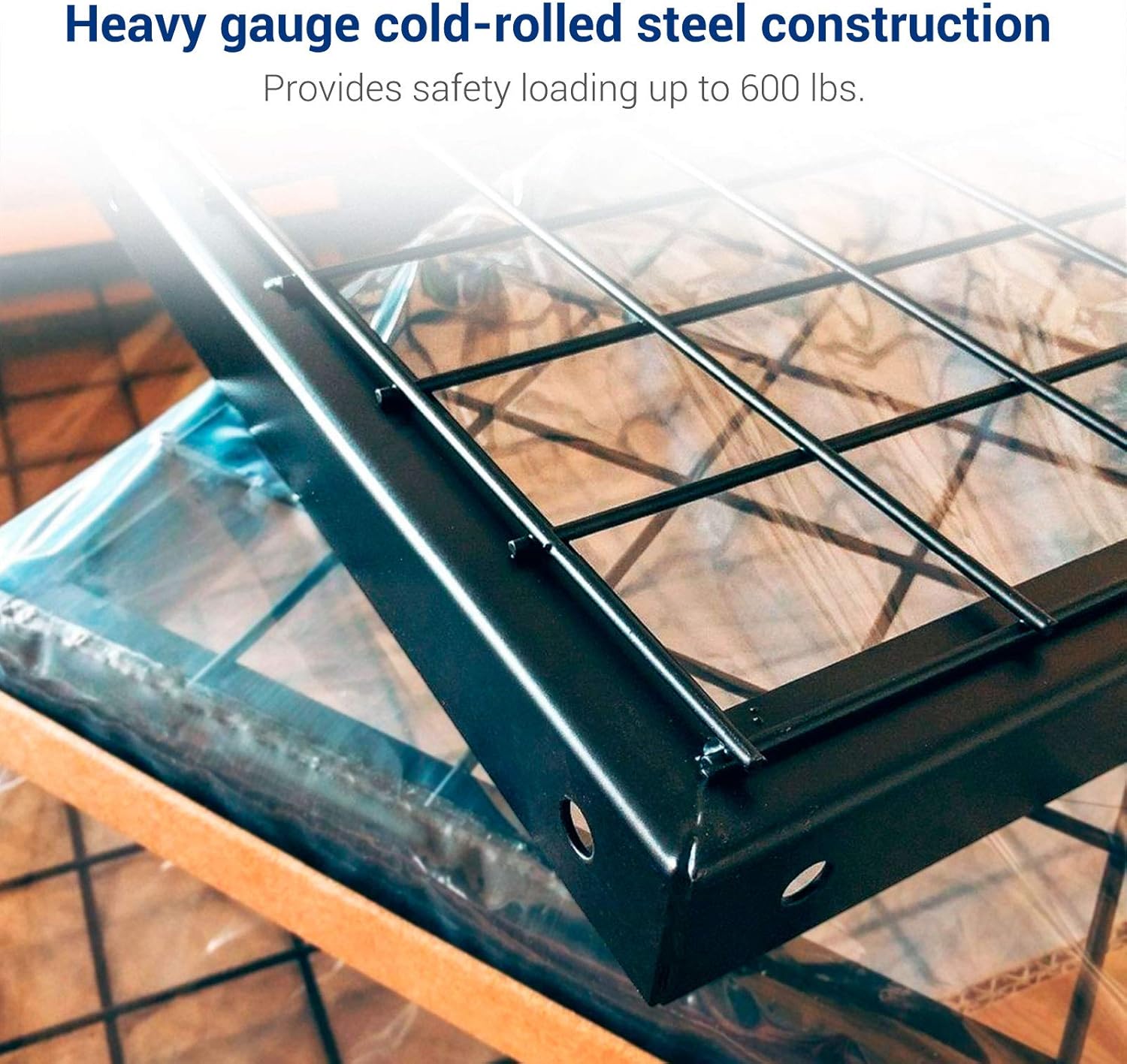 - 1200 lbs Tested, 600 lbs Rated: Our overhead garage storage rack undergoes rigorous double load testing (1200 lbs) to ensure unmatched safety and durability, supporting up to 600 lbs for your tools and equipment.