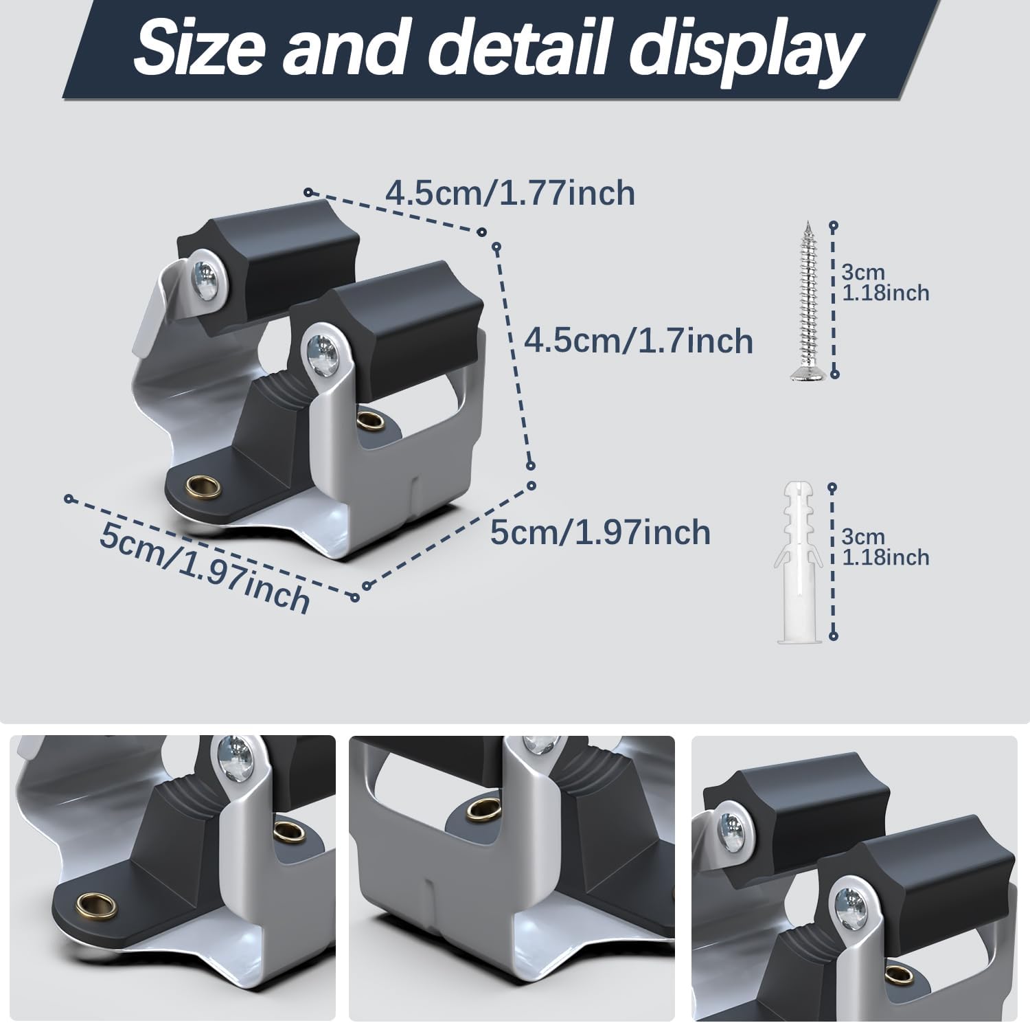 - SUPERB STABLE - Can be attached individually and placed individually.with fit diameter range from 18-35 mm(0.7-1.45 in) by lifting the mop handle, the broom wall mount rolling balls automatically adjust to each broom handle's thickness and grips it securely. silicone grip keeps tool handles away from slipping & scratching,broom holder can grip up to 8-10 pounds cleaning tools and garden tools