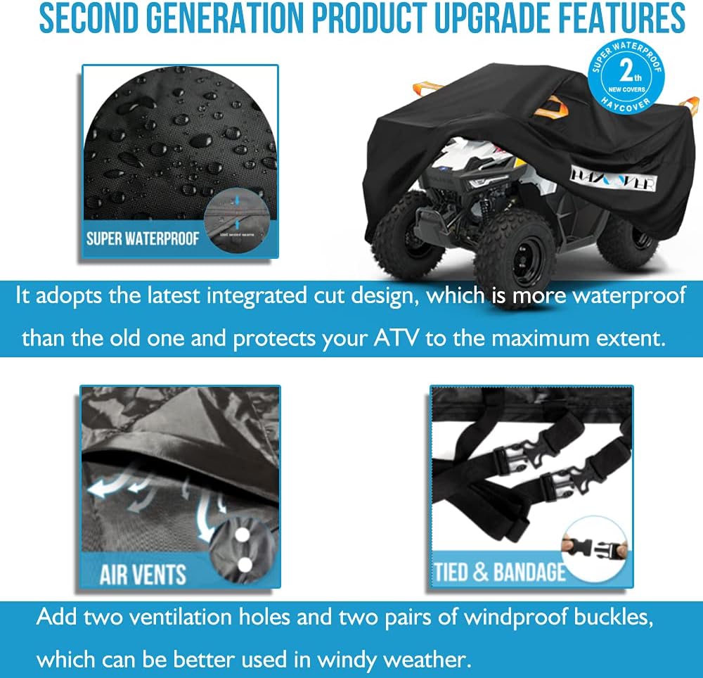 - DURABLE MATERIAL THAN OTHERSL----300D oxford cloth and our special textile process(Waterproof PU coating). which is more weather-resistant, tear-resistant, and wear-resistant. The entire 4 wheeler cover is made of precision two-thread stitching, absolutely enough firm at the seams. Its product life is 2 times and more than most other ATV Covers.