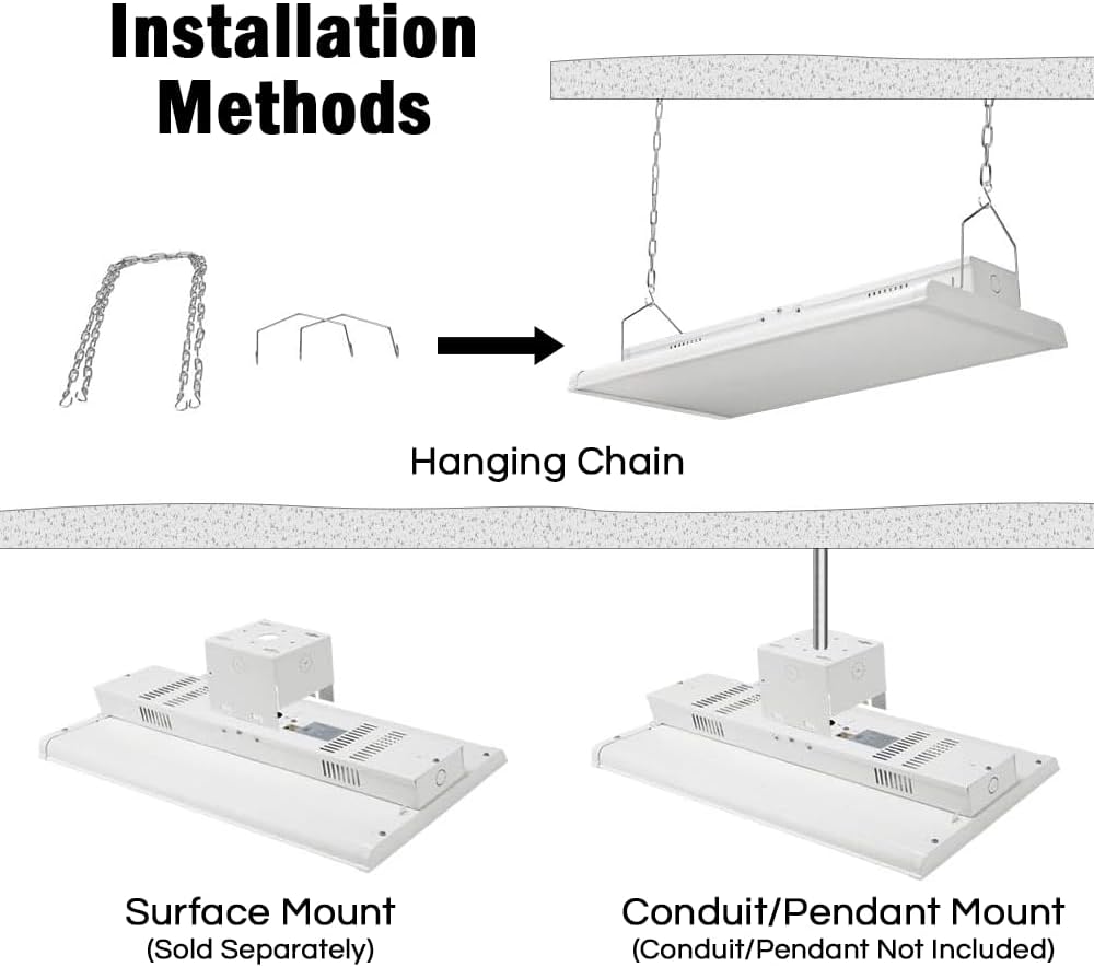 - 💡 Wide Applications – The ceiling light is designed for commercial and industrial applications, works great as Low Bay Ceiling Light or Shop Light over workbenches and in garages.