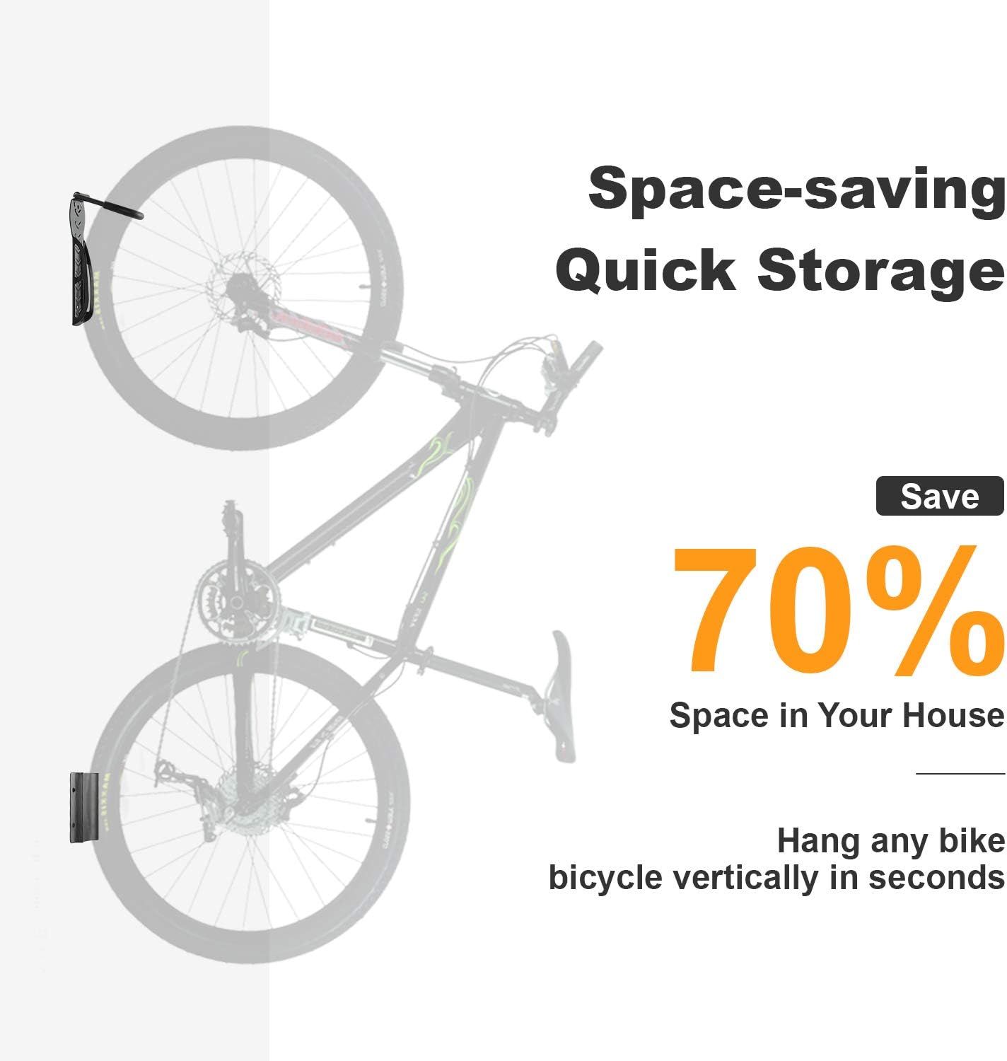 - ACCESSIBILITY IN TIGHT SPACE - Do you know? In general, racks that let you store your bike vertically, wheels perpendicular to the wall, ideally positioned in a corner, take up the least space. Perfect for indoor, multi-family parking solutions and the bike room. Offset vertical bike storage rack, secure the maximum number of bikes within minimum space. Hanging your bike on the wall means freeing up more valuable space for you.