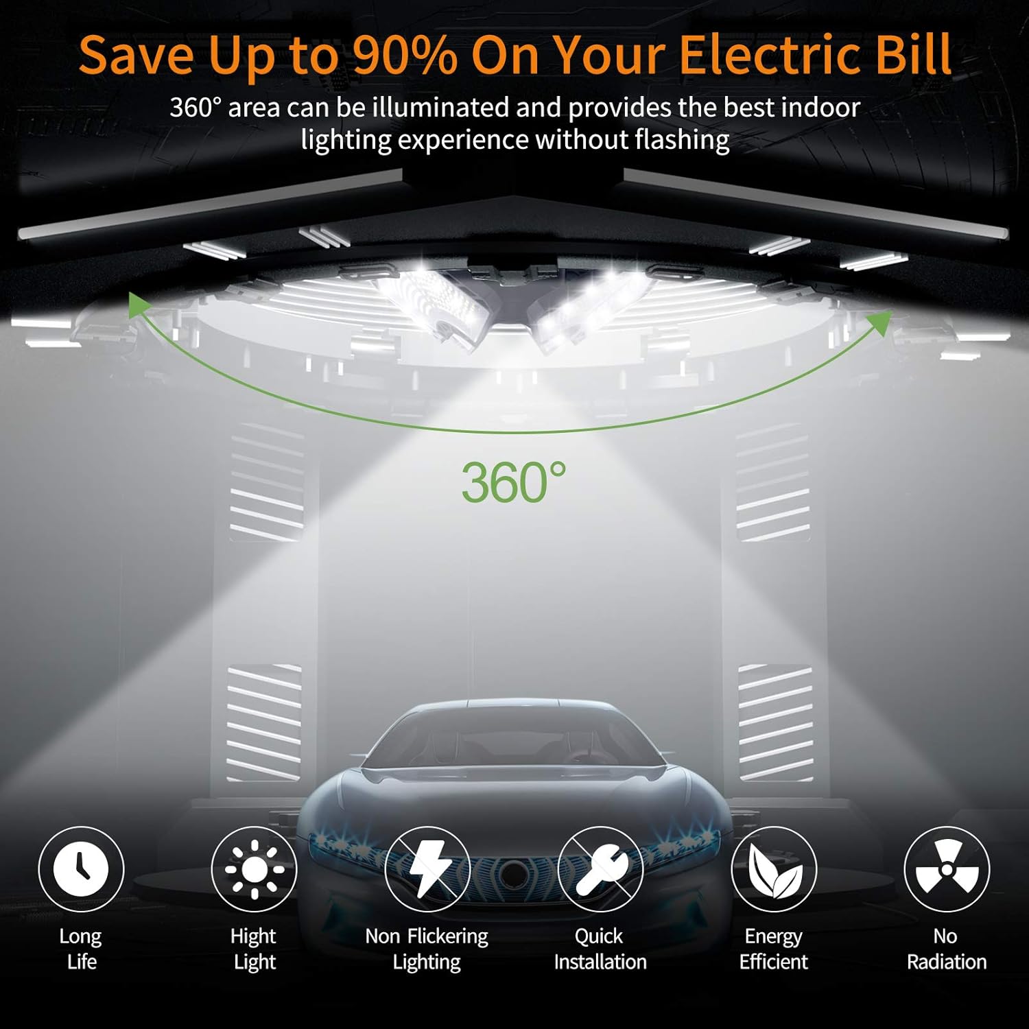 - 💡MORE ENGRGY SAVING & DURABLE💡 This garage light provide 6000K which is the best color temperature for daylight using, providing the best indoor lighting experience. Consume 140w with 18500LMs, save up to 90% compare with traditional garage light bulb. Over 50,000 hours of constant run time makes the maintenance cost sharply cut down.