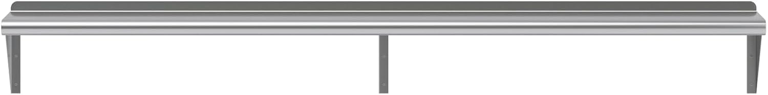 - 10 in. x 72 in. Stainless Steel Wall Shelf with 8 in. High Mounting Brackets. This heavy-duty multifunctional stainless wall shelf is made with 18 gauge stainless steel and can hold up to 230 Lbs of weight. The design features a 1 in. backsplash and bullnose edge. It's made with durable welded corners and support brackets.
