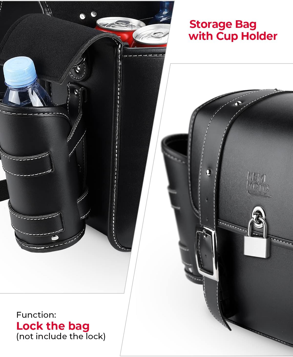 KEMIMOTO Motorcycle Saddlebags Throw Over Saddle bags 20L Faux Leather Side Luggage Bags with cup holder for Sportster Softail Dyna Rebel Shadow Universal Black