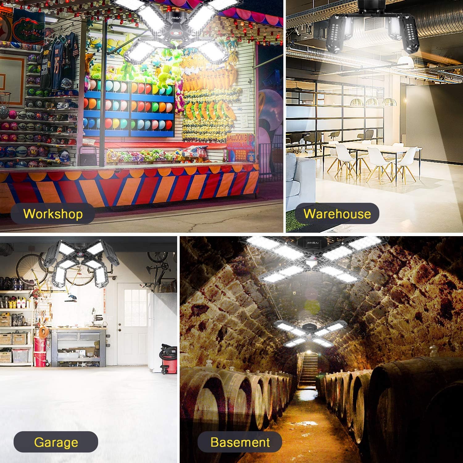 2 Pack LED Garage Light,Super Bright Screw in E26/E27 Ceiling Shop Work Lamp, 200W 20000 Lumen Deformable Basement Bulb Fixture with 8 Adjustable Panels