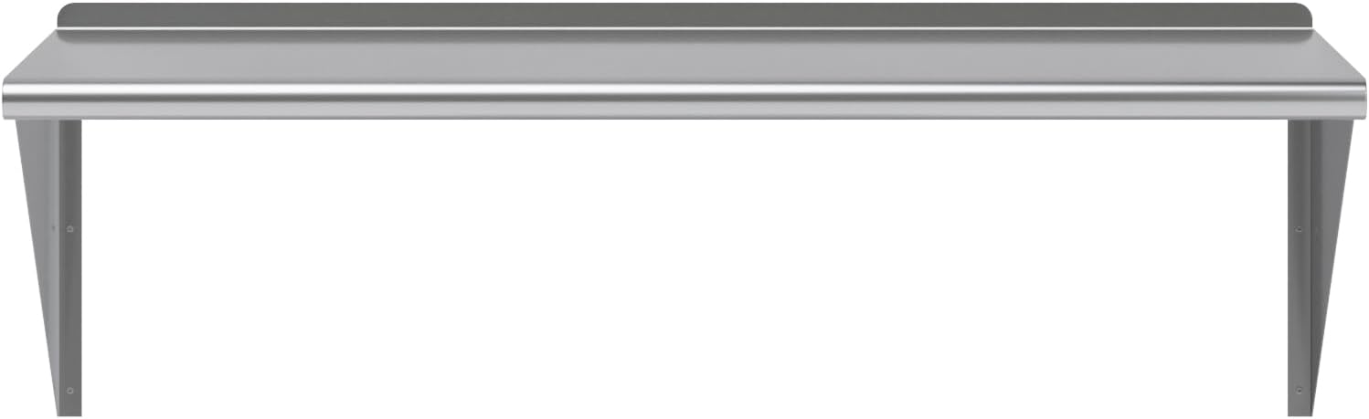 - 24 in. x 48 in. Stainless Steel Wall Shelf with 15 in. High Mounting Brackets. This heavy-duty multifunctional stainless wall shelf is made with 18 gauge stainless steel and can hold up to 450 Lbs of weight. The design features a 1 in. backsplash and bullnose edge. It's made with durable welded corners and support brackets.