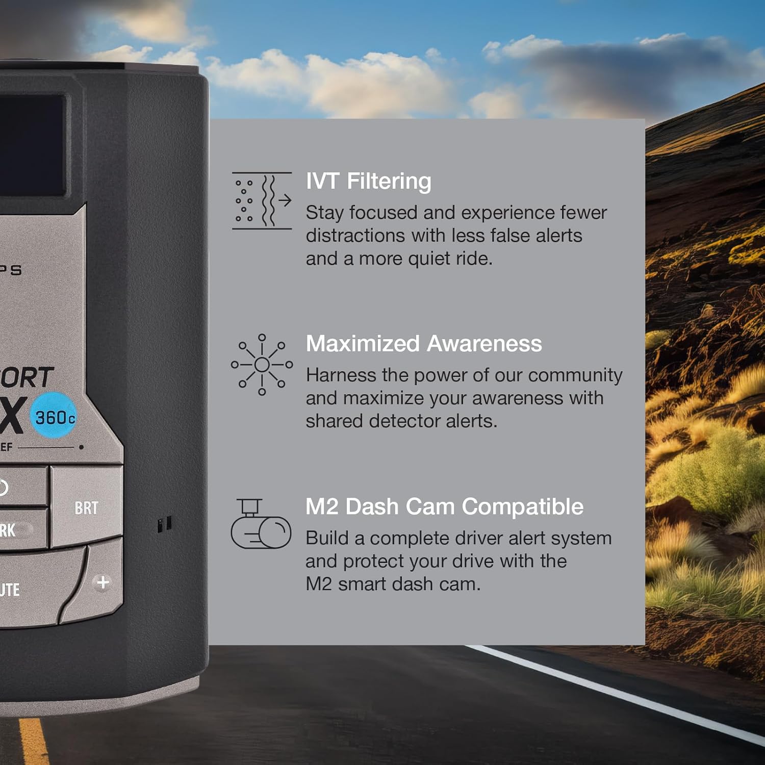 - Comes with travel case, SmartCord USB, and radar detector mount.